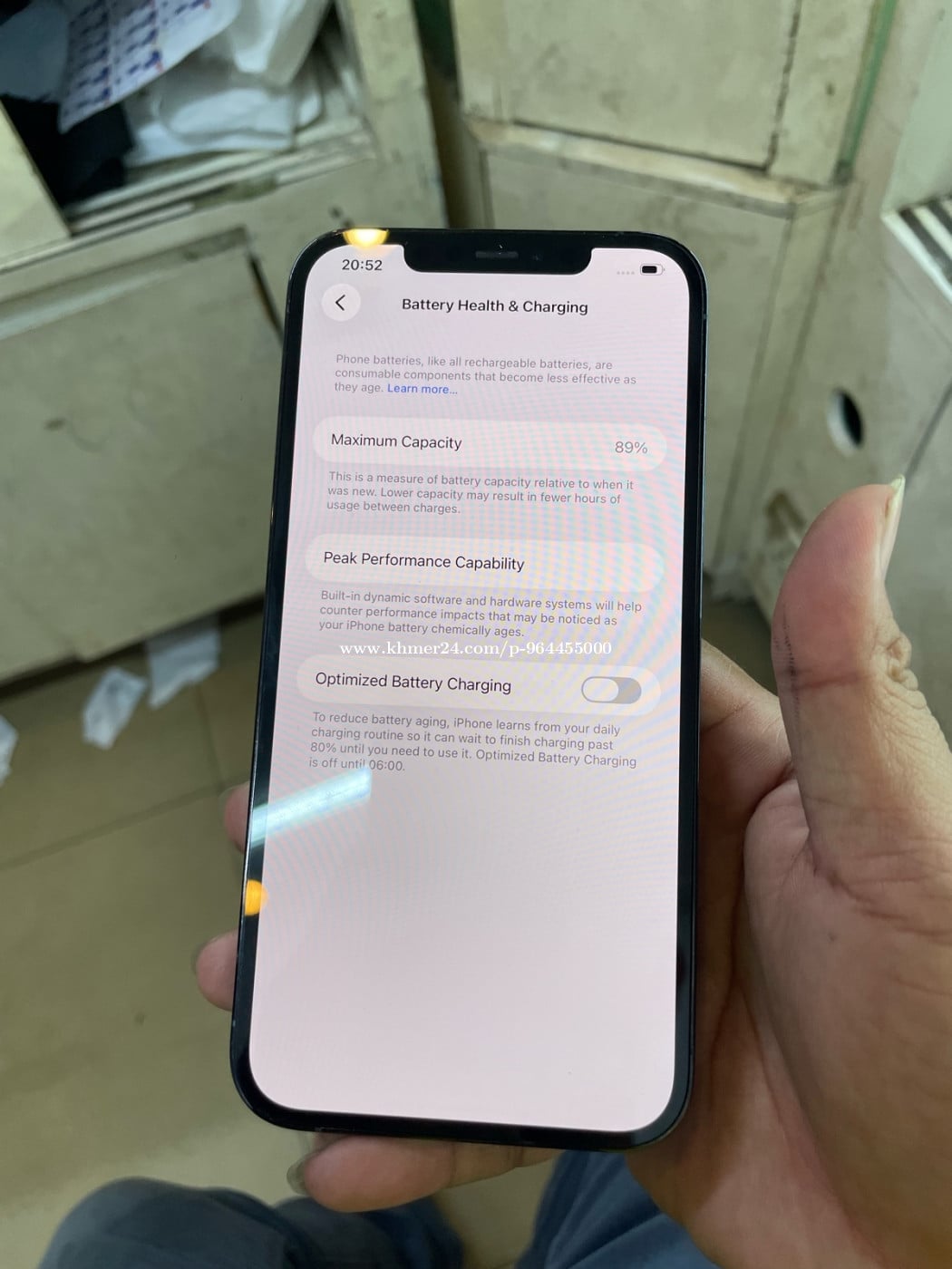 ទូរសព្ទ័សានុំហ្សុីន256GB ថ្ម89%កូតLL/Aស្ទើកាមេរ៉ាក្រោយ
