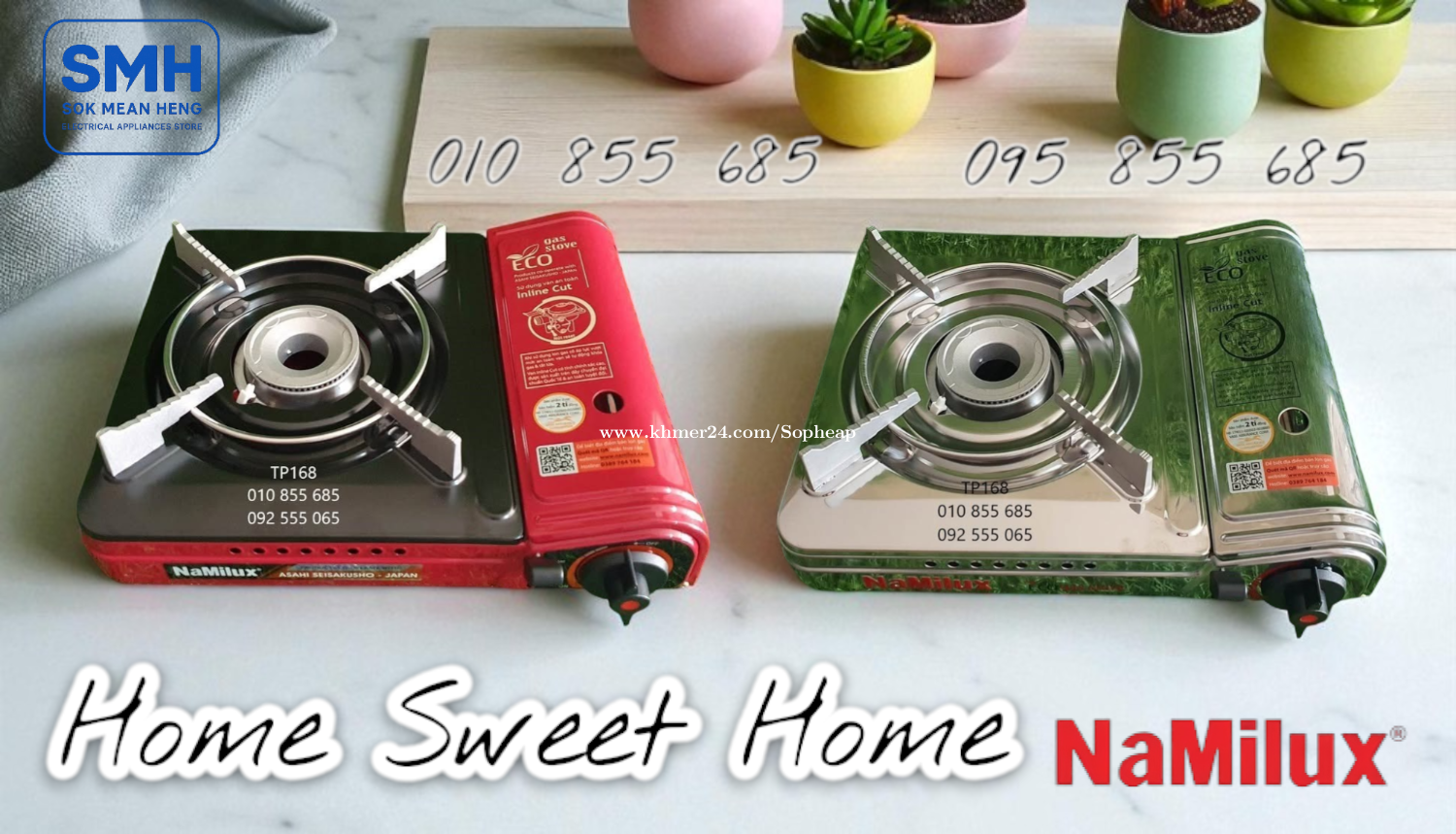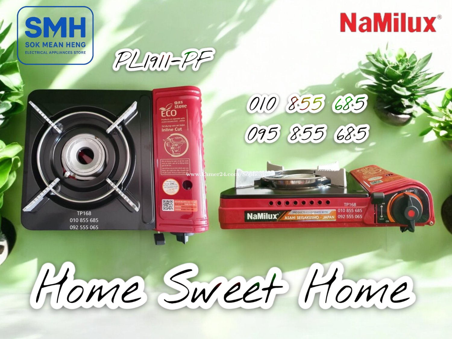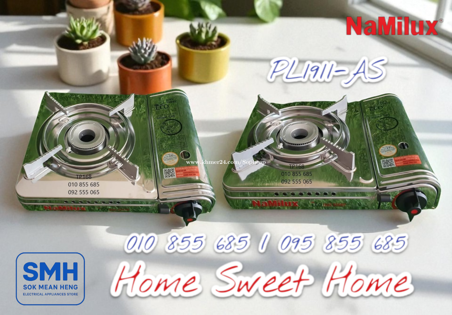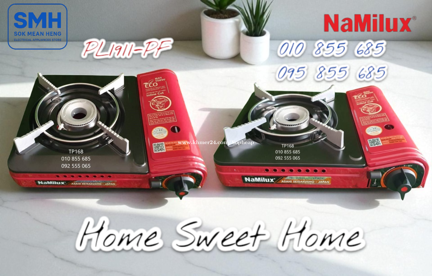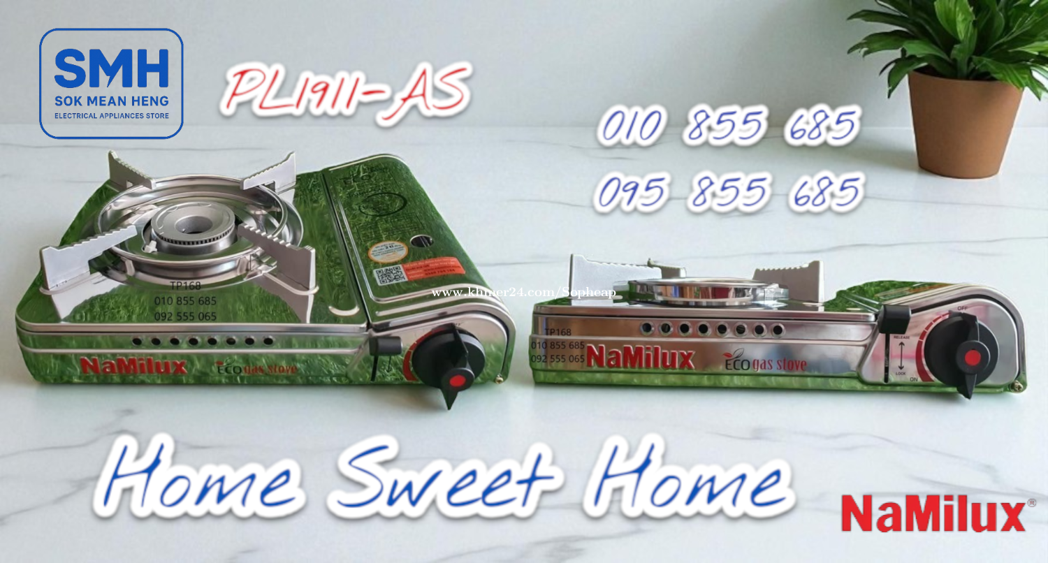 ចង្ក្រានហ្គាស NaMilux ECO-Series Gas Cooker (New) . - ផលិតផលនាំចេញគុណភាពខ្ពស់ប្រទេសវៀតណាម - High Quality Export Product of Vietnam - មានប្រព័ន្ធផ្តាច់ហ្គាសដោយស្វ័យប្រវត្តិ - Auto Cut Out Of Gas / Safety Valve Inline Cute - Weight / Capacity: 1.35Kg / 2.6KW (2200 kcal/h) - Size: 102 x 332 x 280 mm (H-W-D) - ប្រើកំប៉ុងហ្គាស / Use Gas Can . 1. ចង្ក្រានហ្គាស Namilux PL1911-PF_ECO Gas Cooker * តំលៃ / Price: 14.9$ . 2. ចង្ក្រានហ្គាស Namilux PL1911-AS_ECO Gas Cooker (អុីណុក / INOX) * តំលៃ / Price: 17.9$ . SMH / សុខ មាន ហេង / Sok Mean Heng ហាងលក់គ្រឿងប្រើប្រាស់អគ្គិសនី / Electrical Appliances Store . Phone / Telegram (សេវាកម្មរហ័ស / Fast Service): Smart: 010855xxxClick To Call / https://t.me/Annsopheap Cellcard: 095855xxxClick To Call / http://t.me/Annsopheap095 . អាស័យដ្ឋាន / Address: No. 392, MaoTseToung Blvd. (St. 245), Phnom Penh. (Near P Jolie Beauty Center) . ផែនទី / Maps: https://www.google.com/maps?q=11.55595844757693,104.90165490657091&15 . #ចង្ក្រានហ្គាស #អុីណុក #ហ្គាស #ថៃ #គ្រឿងអគ្គីសនី #គ្រឿងប្រើប្រាស់អគ្គិសនី #NaMilux #GasCooker #GasStove #Gas #Inox #Vietnam #PL1911PF #PL1911AS #ECO #SMH #Appliances #ElectricAppliances #ElectricalAppliances #ApplianceStore #Promotion #Discount #Save #Free #New