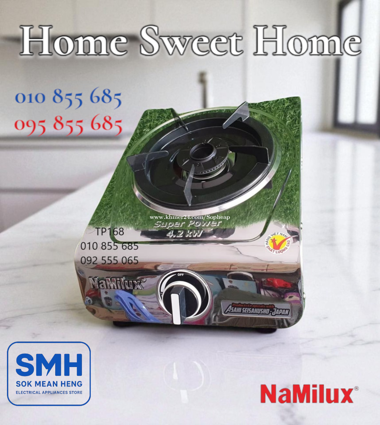 ចង្ក្រានហ្គាស NaMilux SM3163A-PS Gas Stove _ Inox (Free Delivery) . - ផលិតផលនាំចេញគុណភាពខ្ពស់ប្រទេសវៀតណាម - High Quality Export Product of Vietnam - Material: អុីណុក / Inox - Gas Power: 4.2kw - Gas Consumption: 305g/hr - Weight: 1.7Kg - Meas: D400 x R292 x C140 mm - ប្រើធុងហ្គាស / Use Gas Tank . * តំលៃ / Price: 34.9$ . SMH / សុខ មាន ហេង / Sok Mean Heng ហាងលក់គ្រឿងប្រើប្រាស់អគ្គិសនី / Electrical Appliances Store . Phone / Telegram (សេវាកម្មរហ័ស / Fast Service): Smart: 010855xxxClick To Call / https://t.me/Annsopheap Cellcard: 095855xxxClick To Call / http://t.me/Annsopheap095 . អាស័យដ្ឋាន / Address: No. 392, MaoTseToung Blvd. (St. 245), Phnom Penh. (Near P Jolie Beauty Center) . ផែនទី / Maps: https://www.google.com/maps?q=11.55595844757693,104.90165490657091&15 . #ចង្ក្រានហ្គាស #អុីណុក #ហ្គាស #វៀតណាម #គ្រឿងអគ្គីសនី #គ្រឿងប្រើប្រាស់អគ្គិសនី #NaMilux #GasCooker #GasStove #Gas #Inox #SM3163APS #ECO #SMH #Vietnam #Appliances #ElectricAppliances #ElectricalAppliances #ApplianceStore #HomeAppliance #Promotion #Discount #Save #Free #New