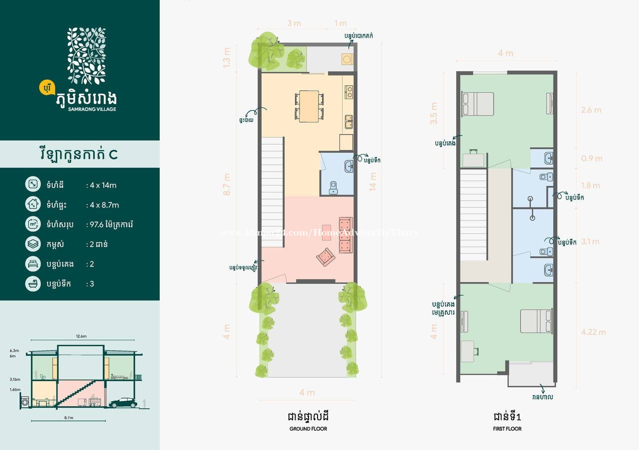 វីឡាកូនកាត់ LC ទំហំដី៖ 4 x 14m ទំហំផ្ទះ៖ 4 x 8.7m កម្ពស់៖ 2 ជាន់ បន្ទប់គេង៖ 2 បន្ទប់ទឹក៖ 3 តម្លៃ៖ $69,900