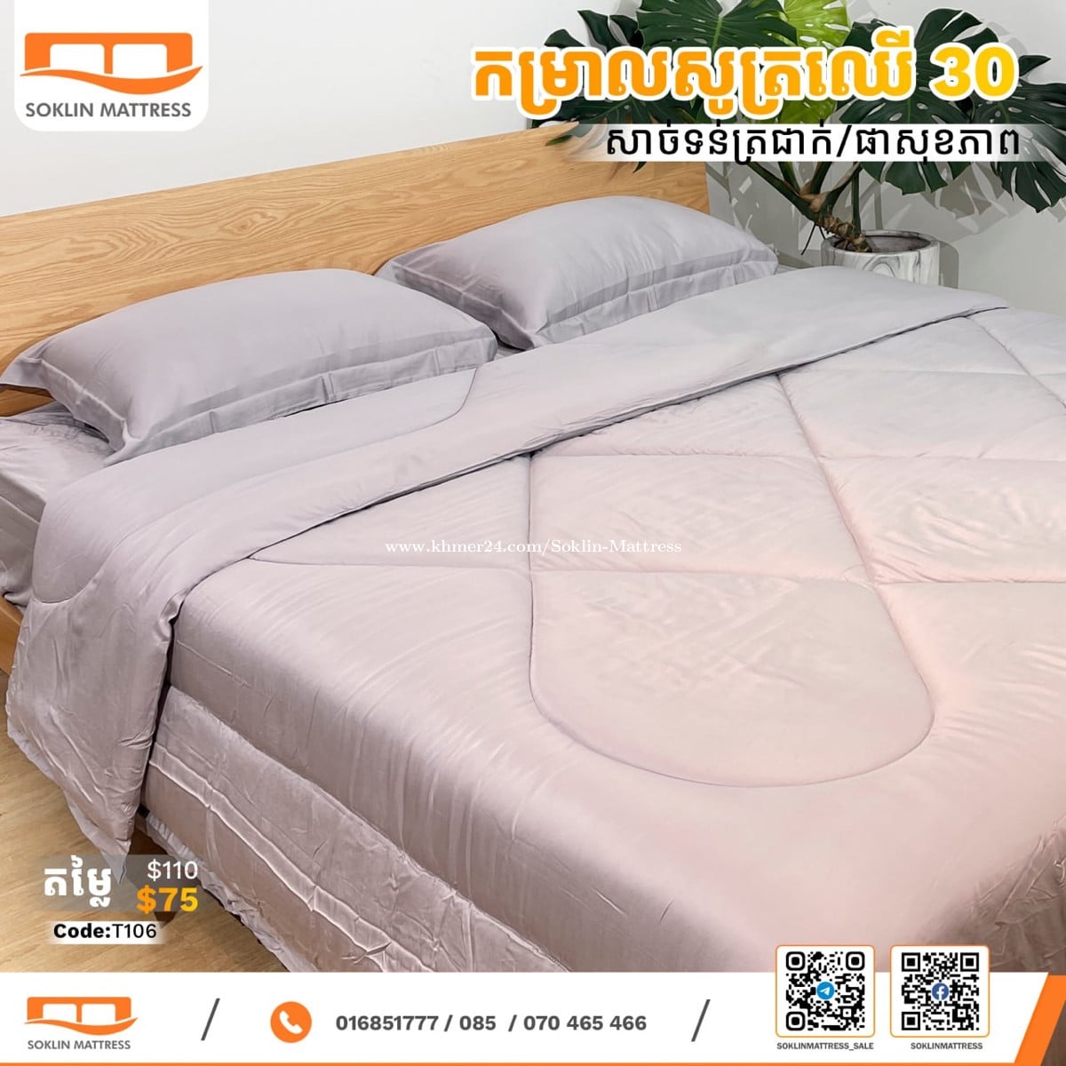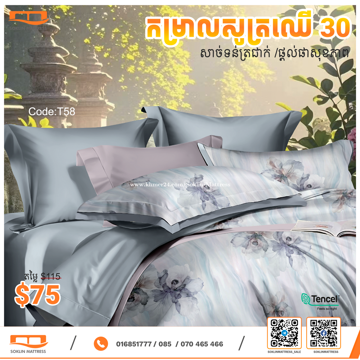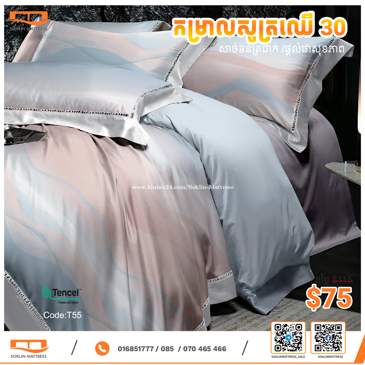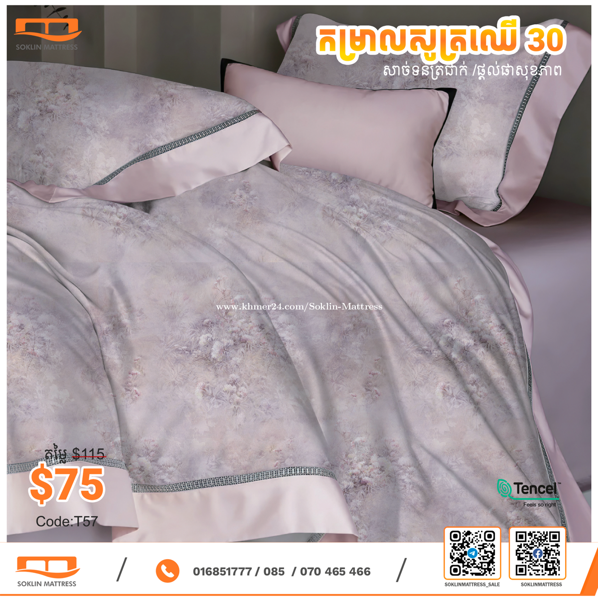 ឆុតកំរាលពូកសូត្រឈើ30 សាច់ទន់ត្រជាក់ មិនបែកព្រុយ មិនស្គាប មិនឆក់ ១ឆុតមាន - កំរាលពូក (ដាក់ពូកបានដល់កំរាស់ 3តឹក) - ស្រោមខ្នើយកើយ - ស្រោមខ្នើយអោប - ភួយ បងប្អូនអាចអញ្ចើញមកមើលផ្ទាល់ដល់ទីតាំង showroom បាម តេលេក្រាម 016851xxxClick To Call Tencel comforter set, very comforterble. Big set included fitted sheet , pillow case, bolster case and comforter