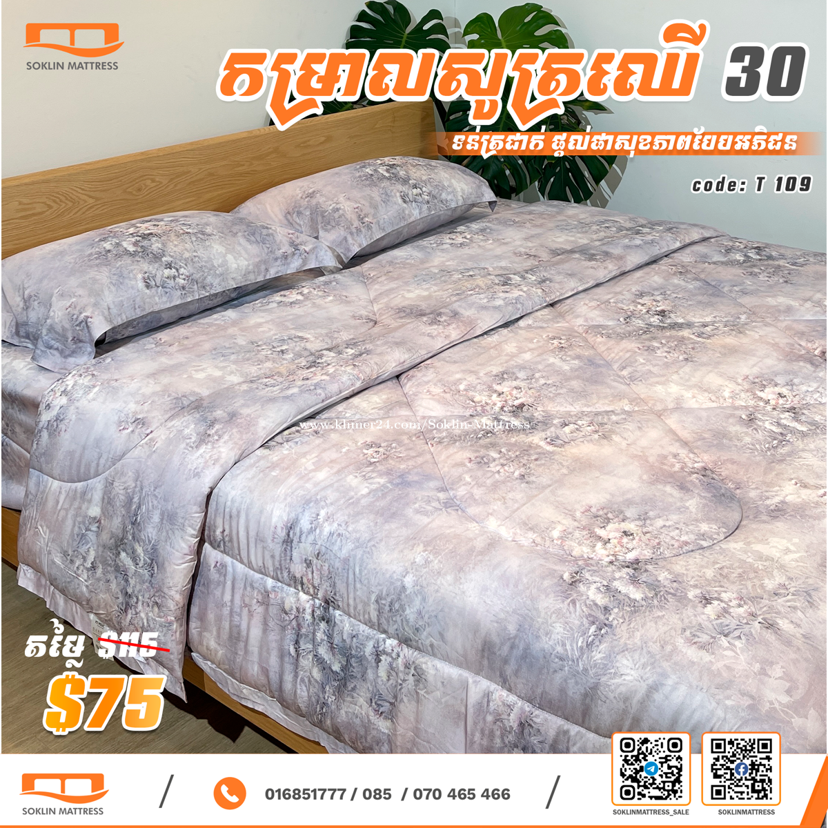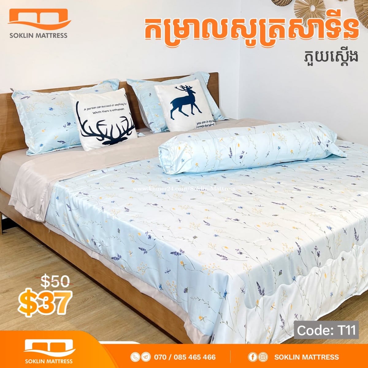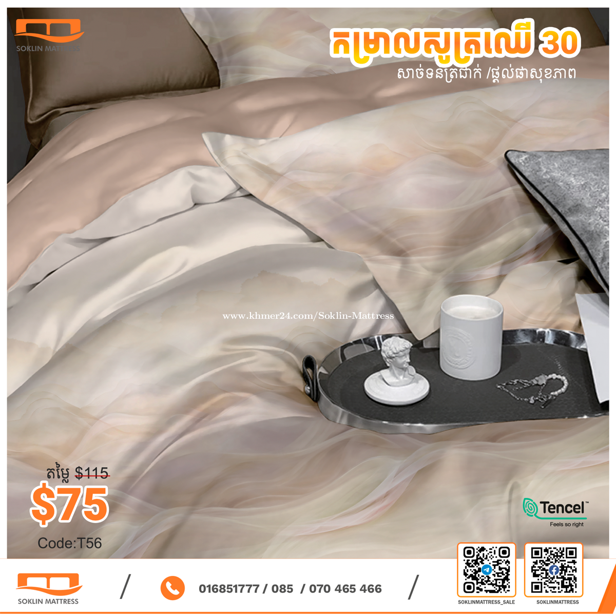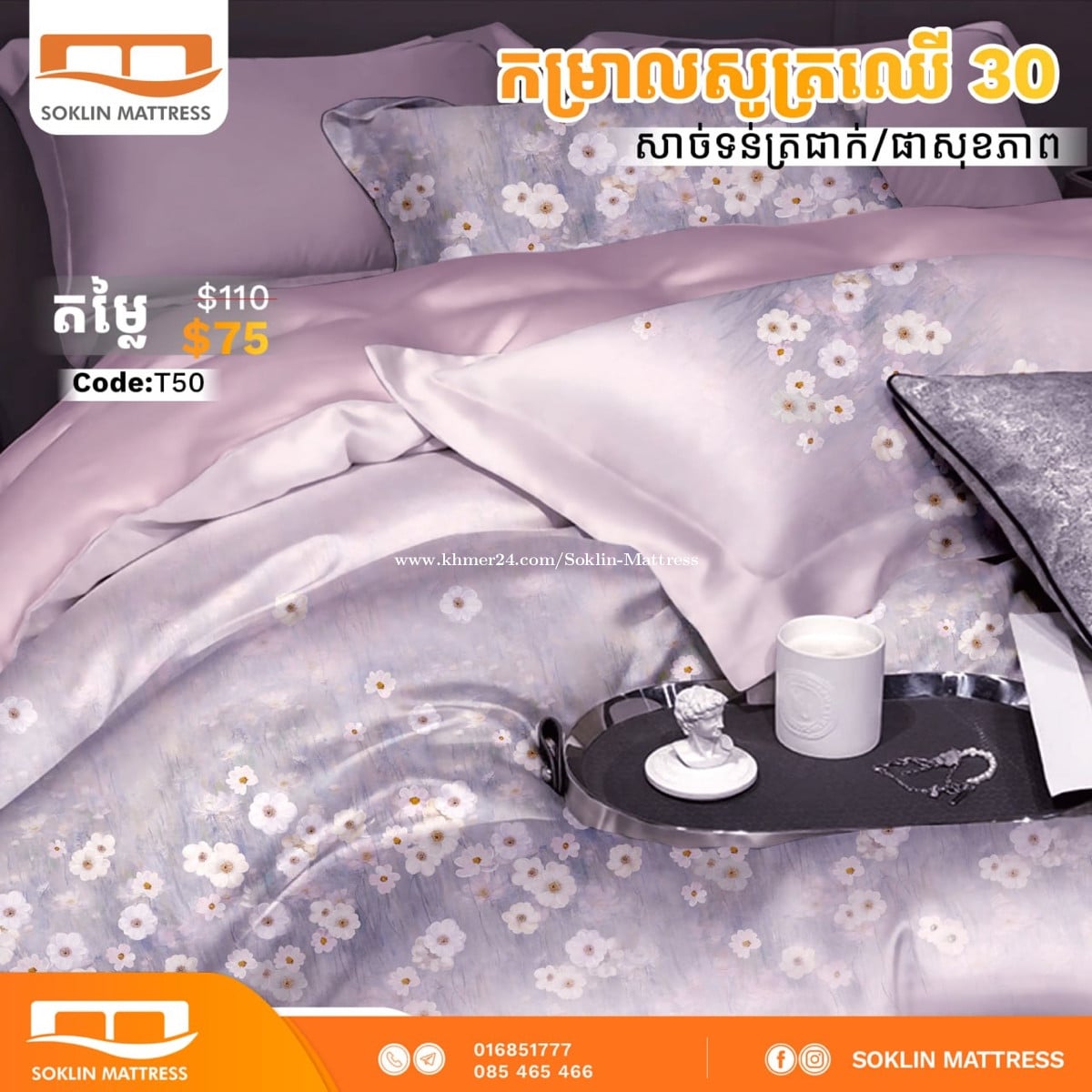 ឆុតកំរាលពូកសូត្រឈើ30 សាច់ទន់ត្រជាក់ មិនបែកព្រុយ មិនស្គាប មិនឆក់ ១ឆុតមាន - កំរាលពូក (ដាក់ពូកបានដល់កំរាស់ 3តឹក) - ស្រោមខ្នើយកើយ - ស្រោមខ្នើយអោប - ភួយ បងប្អូនអាចអញ្ចើញមកមើលផ្ទាល់ដល់ទីតាំង showroom បាម តេលេក្រាម 016851xxxClick To Call Tencel comforter set, very comforterble. Big set included fitted sheet , pillow case, bolster case and comforter