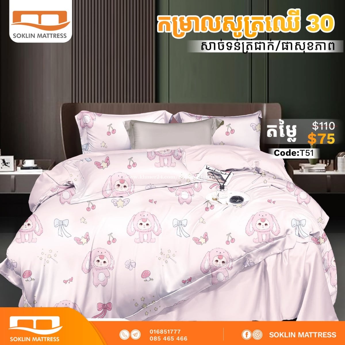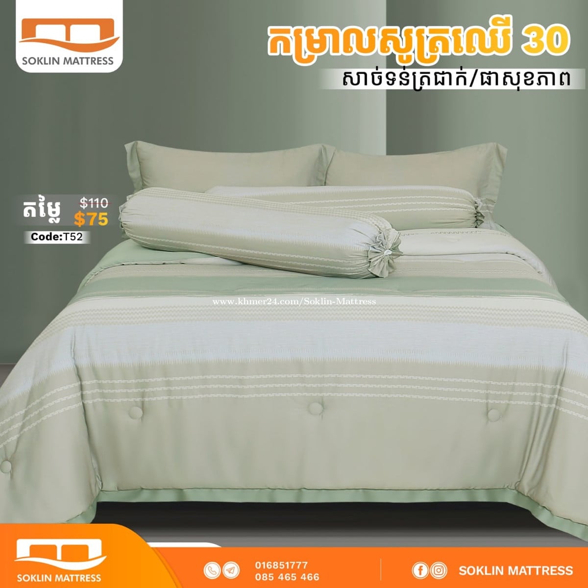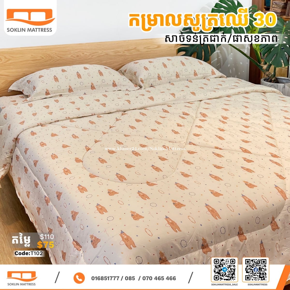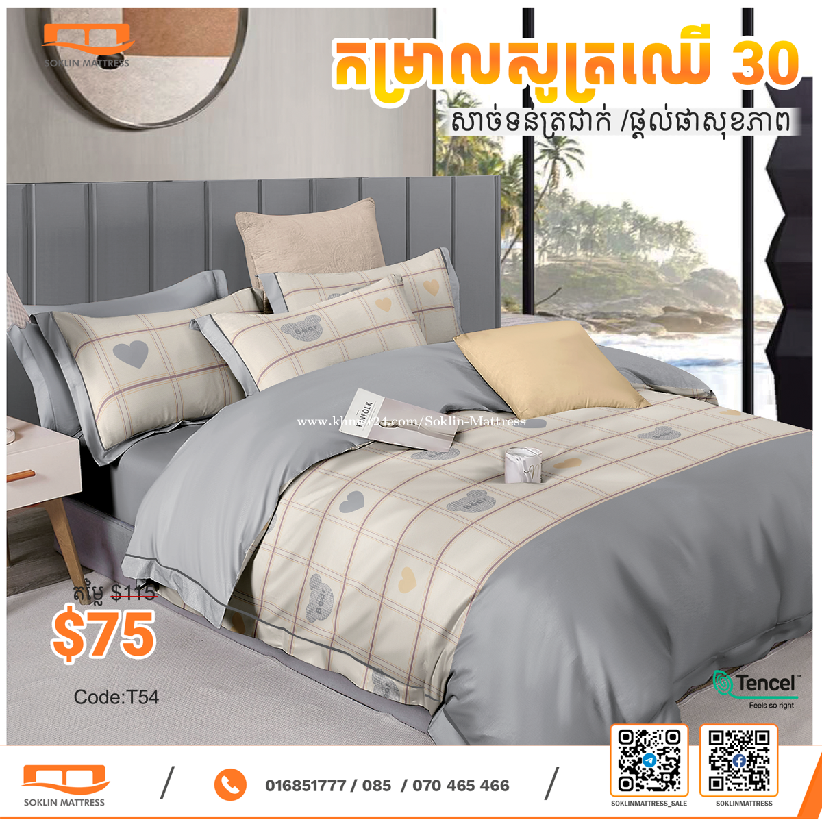 ឆុតកំរាលពូកសូត្រឈើ30 សាច់ទន់ត្រជាក់ មិនបែកព្រុយ មិនស្គាប មិនឆក់ ១ឆុតមាន - កំរាលពូក (ដាក់ពូកបានដល់កំរាស់ 3តឹក) - ស្រោមខ្នើយកើយ - ស្រោមខ្នើយអោប - ភួយ បងប្អូនអាចអញ្ចើញមកមើលផ្ទាល់ដល់ទីតាំង showroom បាម តេលេក្រាម 016851xxxClick To Call Tencel comforter set, very comforterble. Big set included fitted sheet , pillow case, bolster case and comforter