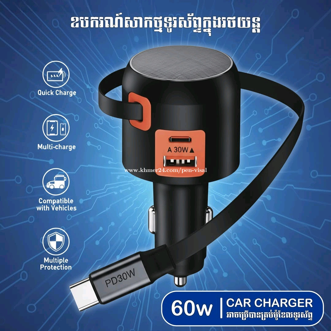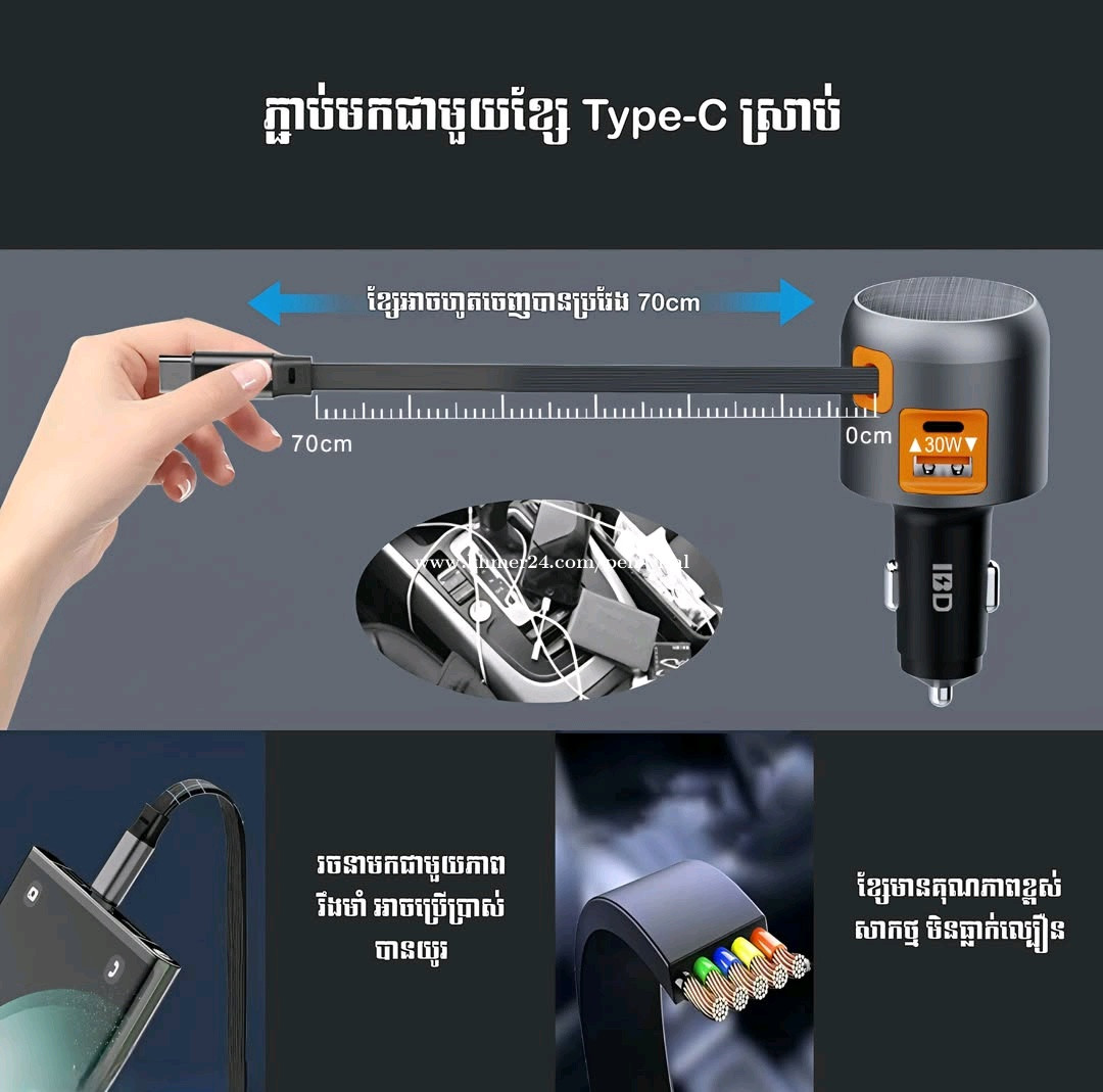 ឧបករណ៍សាកថ្មទូរស័ព្ទដៃ🔋📱 ដោតជាមួយកន្ទុយបារីនៅក្នុងរថយន្ត ងាយស្រួលក្នុងការប្រើប្រាស់ 👉សាកថ្មលឿន (Fast Charging) អាច Support កំលំាងសាកបានរហូតដល់ 60W 👉ដុំមានភ្ជាប់ខ្សែ Type C មកជាមួយស្រាប់ 👉ខ្សែអាចហូតចេញបានប្រវែង 70 cm 👉មានមុខងារការពារមិនធ្វើអោយប៉ះពាល់ដល់ថ្មទូរស័ព្ទ ✅នៅភ្នំពេញជិតៗ Free ដឹកជូន ☎️ 086970xxxClick To Call មាន Telegram