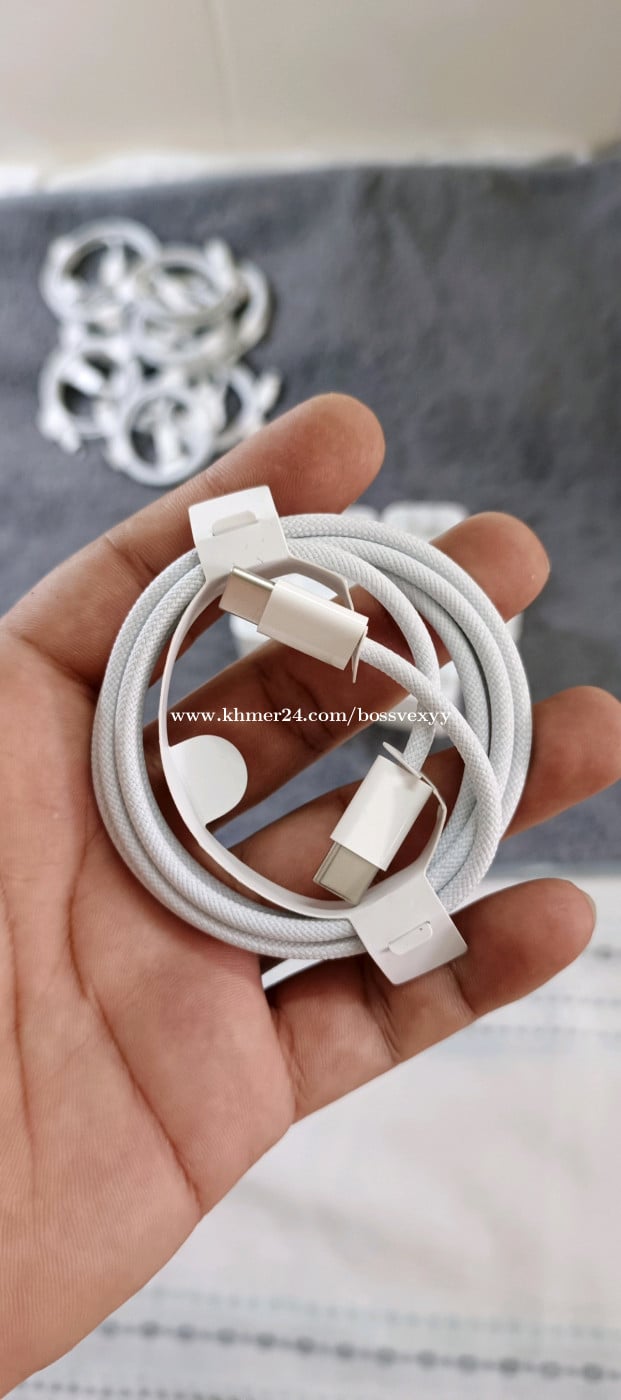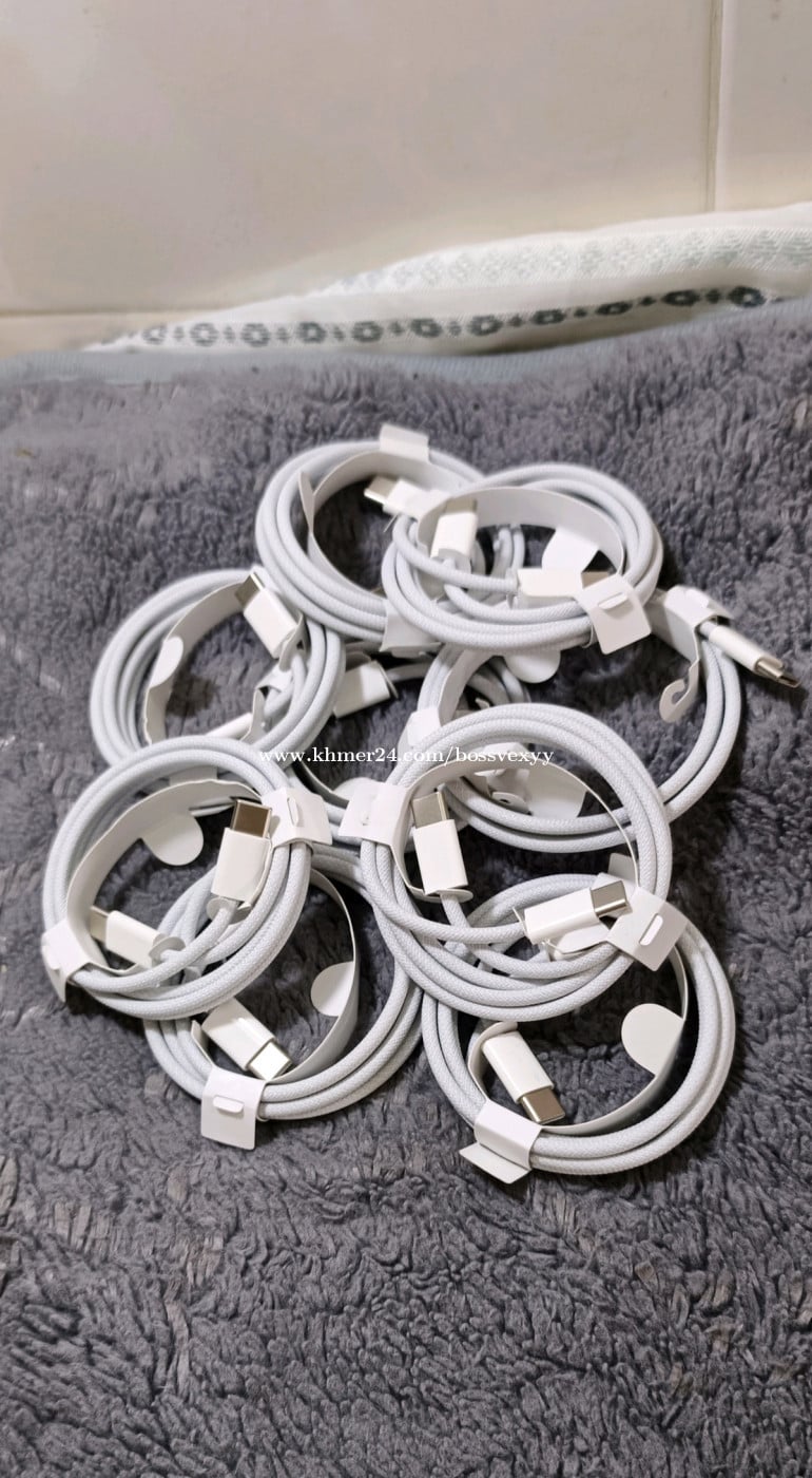 ឆ្នាំងសាក Iphone Original Type C to Lightning (ថ្មី) 10$ Type C to Type C (ថ្មី) 15$ ដំសាក Iphone (មួយទឹក) 15$ -Set ដំសាក Iphone+ខ្សែសាក Lightning 23$ -Set ដំសាក Iphone+ខ្សែសាក Type C 26$