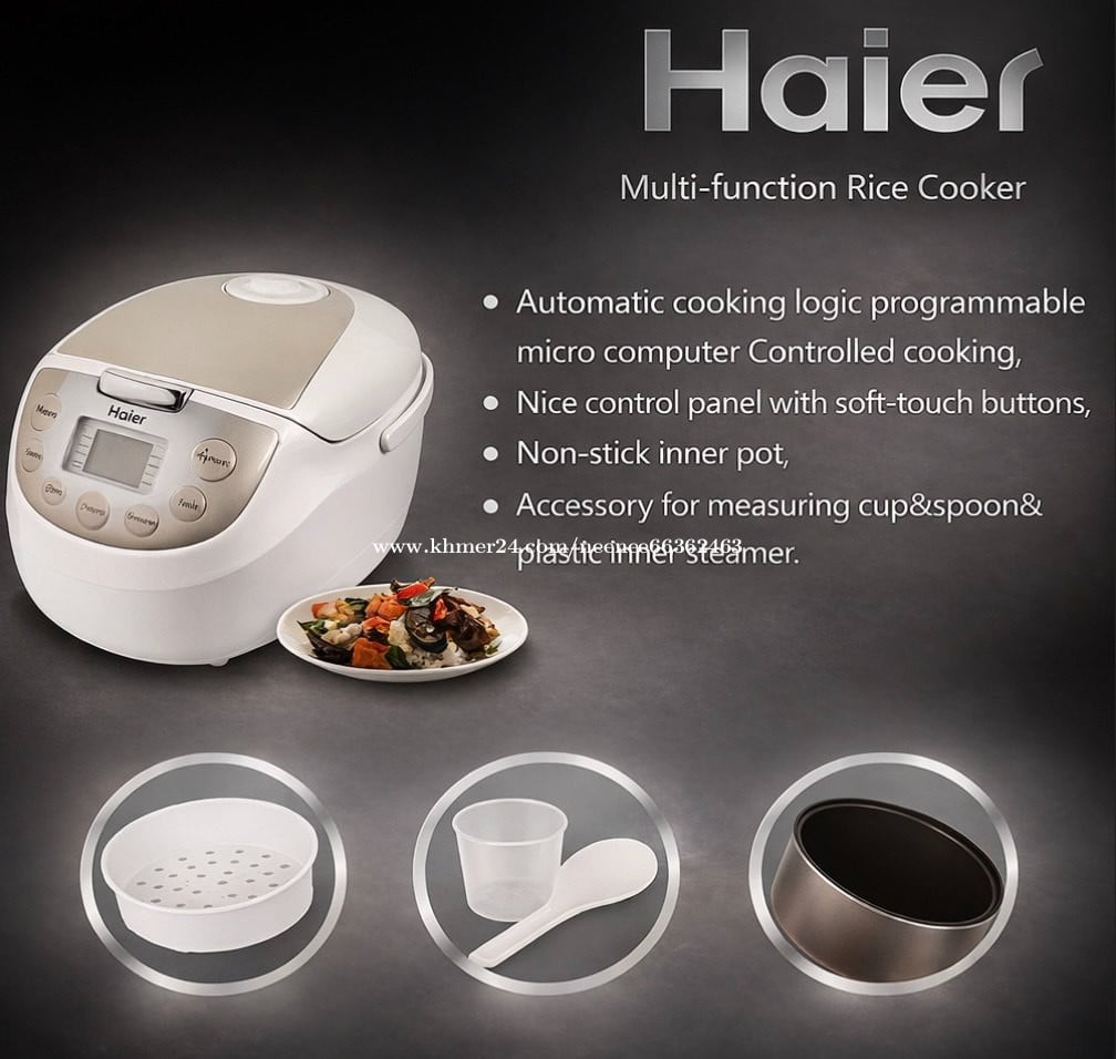 ឆ្នាំងអគ្គិសនីម៉ាក ហៃអឺរ (Haier) មានទំហំធំអាចដាំបាយបាន៤ទៅ៥ កំប៉ុង មានមុខងារច្រើនអាចបញ្ជាលើប៊ូតុងឆ្នាំងអគ្គិសនីបាន