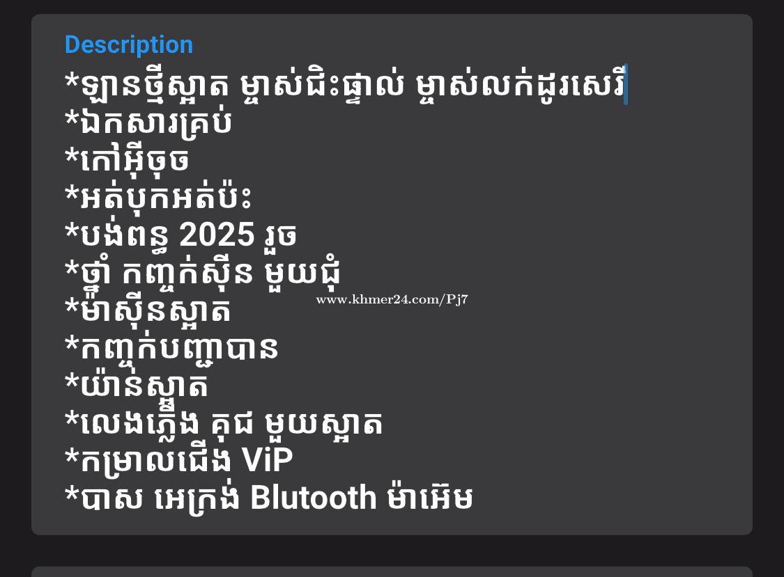 Contact Info: Please don't forget to mention that you found this ad on khmer24.com.