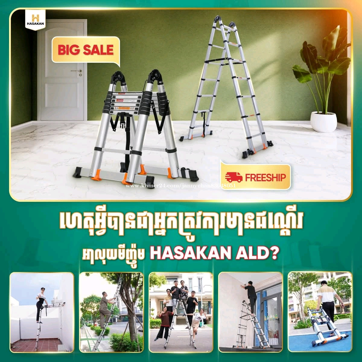 តម្លៃ ក្នុង Pageលក់ 169$ 🌟លក់លាងឃ្លាំង តម្លៃត្រឹមតែ 90$🌟 A: 1m9 , I: 3m8 A: 2m2 , I: 4m4 📌ជាប់ធន់ខ្លាំង (ស្រទាប់អាលុយមីញ៉ូមក្រាស់ - រឹងមាំ- មិនងាយច្រេះ) 📌អាចពន្លាត ឬបង្រួមកម្ពស់ 📌ទម្ងន់ស្រាល 📌ទ្រទំងន់បានធ្ងន់ (~ 300kg) ☎️ 0314099xxxClick To Call ( Telegram)