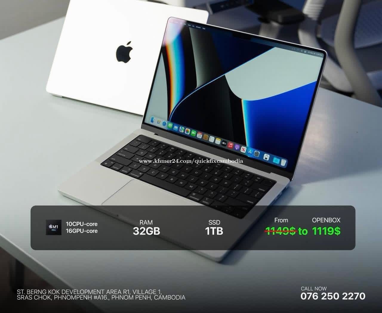 ជម្រើសការងារ IT មួយនេះលក់ដាច់ខ្លាំង 💥 M1Pro 32GB 1TB 🔥 ងាយស្រួលប្រើបានទាំងតម្លៃនិងកម្លាំង ☃️ M1Pro 10CPU 16GPU Full performance 32GB RAM 1TB SSD Only 1119$ ជាមួយការធានាពេញ 12 ខែ ❄️ Accessories 🎁 Includes: ➕ 4 Free Accessories 🛡️ 1-Year Warranty Telegram Chanel : https://t.me/quickfixmacbookusa DM now to order – limited units! Contact : https://t.me/quickfixsale ——————— 𝐐𝐮𝐢𝐜𝐤𝐅𝐢𝐱 quickpcfixaz.net 📞 HOTLINE: 0762502xxxClick To Call 🛵 Call ភ្លាមដឹកចេញភ្លាម