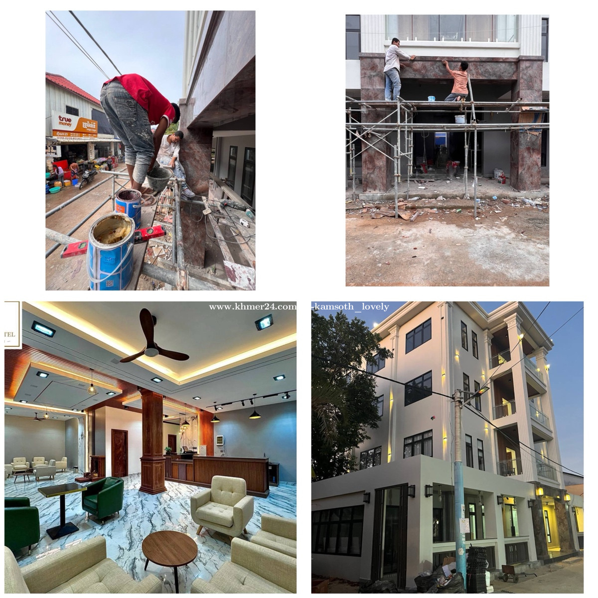 ក្រុមជាងមានបទពិសោធន៍នឹង ឆ្លងកាត់ការងារ ស្តង់ដារនិង កាងារអាគារធំៗជាច្រើន ទទួលធ្វើកាងារ សំណង់គ្រប់ប្រភេទក្នុងតម្លៃទាបការងារល្អជាងមានសីលធម៌ខ្ពស់គោរពនិងស្ដាប់តាមយោបល់របស់ម្ចាស់ផ្ទះ តម្លៃការសាងសង់ ចំណាយតិចនិងទទួលបានគុណភាពការងារល្អធ្វើ លិខិតធានាគុណភាព ជូនត្រឹមត្រូវ ទំនាក់ទំនងការសួរព័ត៌មាននិងបច្ចេកទេសនៃការសាងសង់សំណង់ដោយឥតគិតថ្លៃតាមរយៈពេលលេខតេលេក្រាម ខាងក្រោម 09666 999 23 07677 771 21
