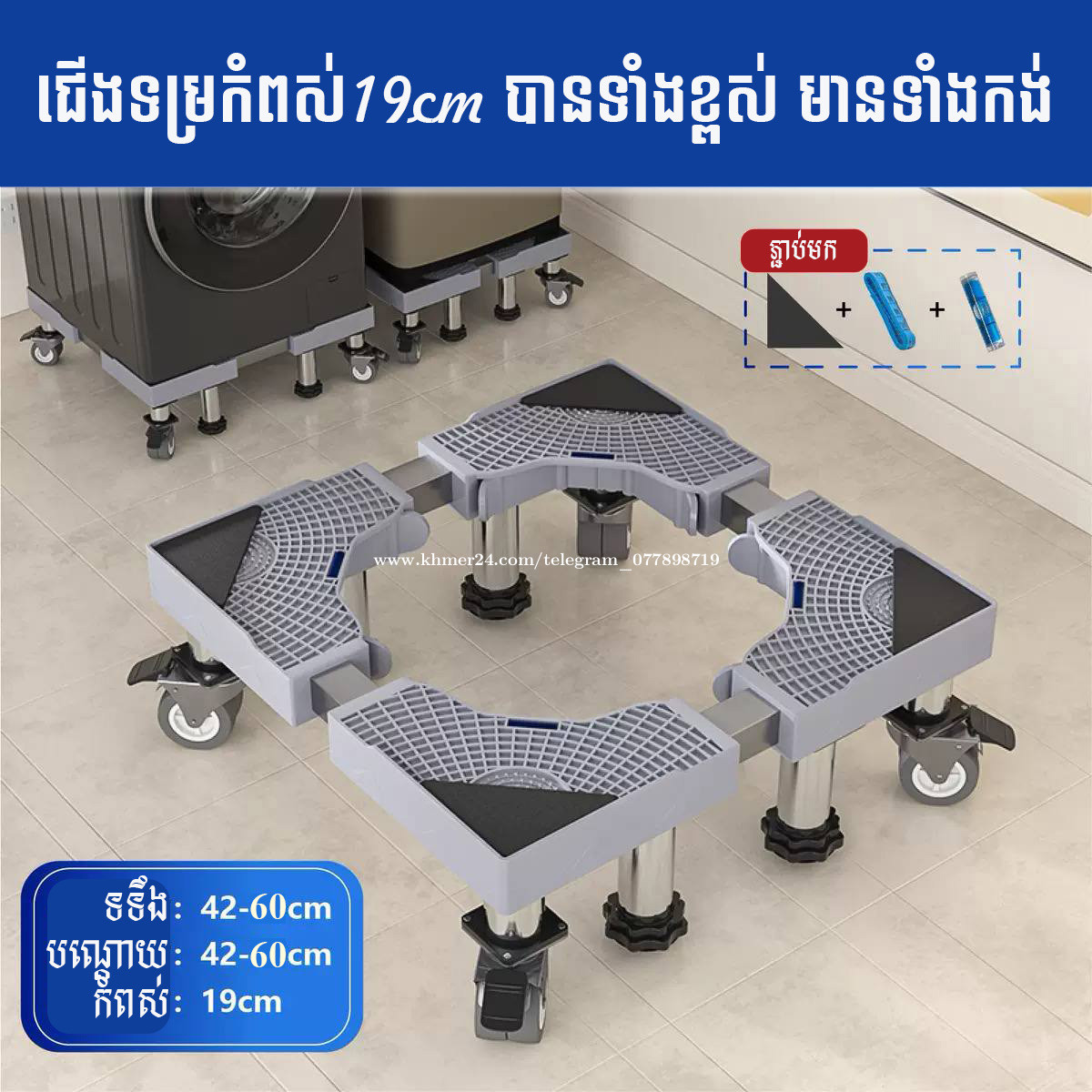✨ជើងទម្រជំនាន់ថ្មី!ប្រើជាមួយឧបករណ៏ទូទៅ ✨មិនថា គ្រឿងអេឡិចត្រូនិក គ្រឿងសង្ហារឹម ឧបករណ៏វិជ្ជសាស្រ្ត -ល- ✨កំពស់ខ្ពស់ (𝟏𝟗𝐜𝐦) និងមានកង់ងាយស្រួលរុញ ✨អាចសារ៉េទំហំបានតាមចិត្ត 𝟒𝟐-𝟔𝟎𝐜𝐦 ✨ការពារសំភារៈរបស់អ្នក ផុតពីសំណើម ការពារច្រេះ ឆ្លងចរន្ត និងធ្វើឱ្យការសម្អាតផ្ទះកាន់តែងាយស្រួល!