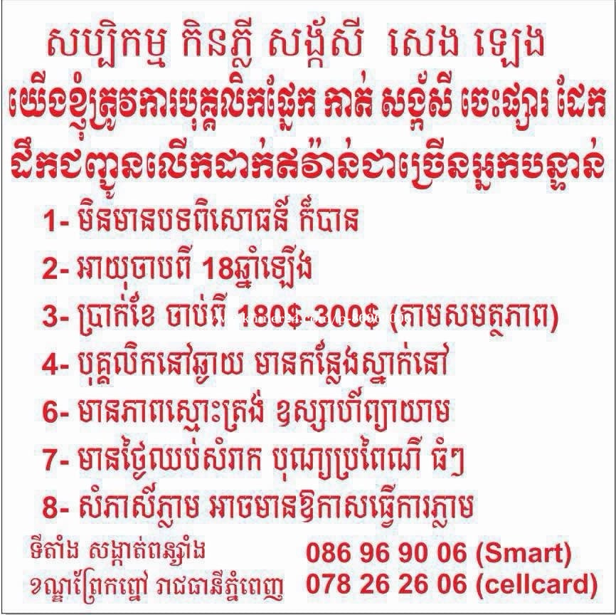 Contact Info: Please don't forget to mention that you found this ad on khmer24.com.