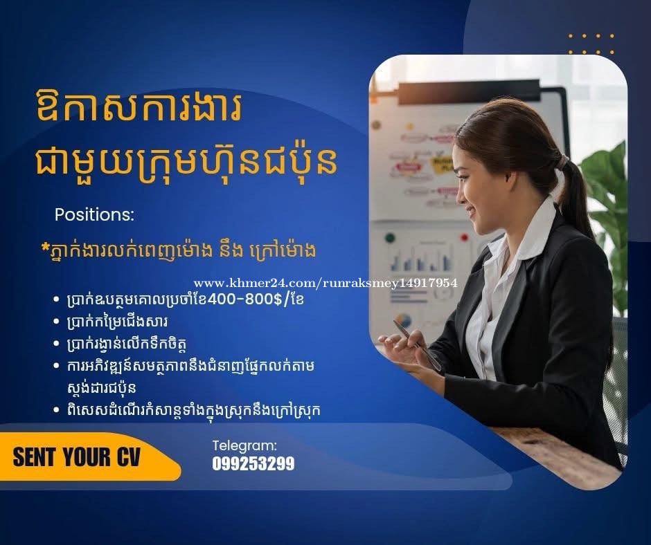 ជ្រើសរើសបុគ្គលិក ផ្នែកលក់ អាយុ25ឡើង ក្រៅម៉ោង និងពេញម៉ោង ប្រាក់ខែ300$ឡើងទៅ$$$$ ទីតាំងនៅ📍ទួលគោក ទល់មុខផ្សារមាន់អាំង ចាប់អាចឆាតមកបាន ឬក៏ទាក់ទងតាម តេលេក្រាម📞☎️099253xxxClick To Call