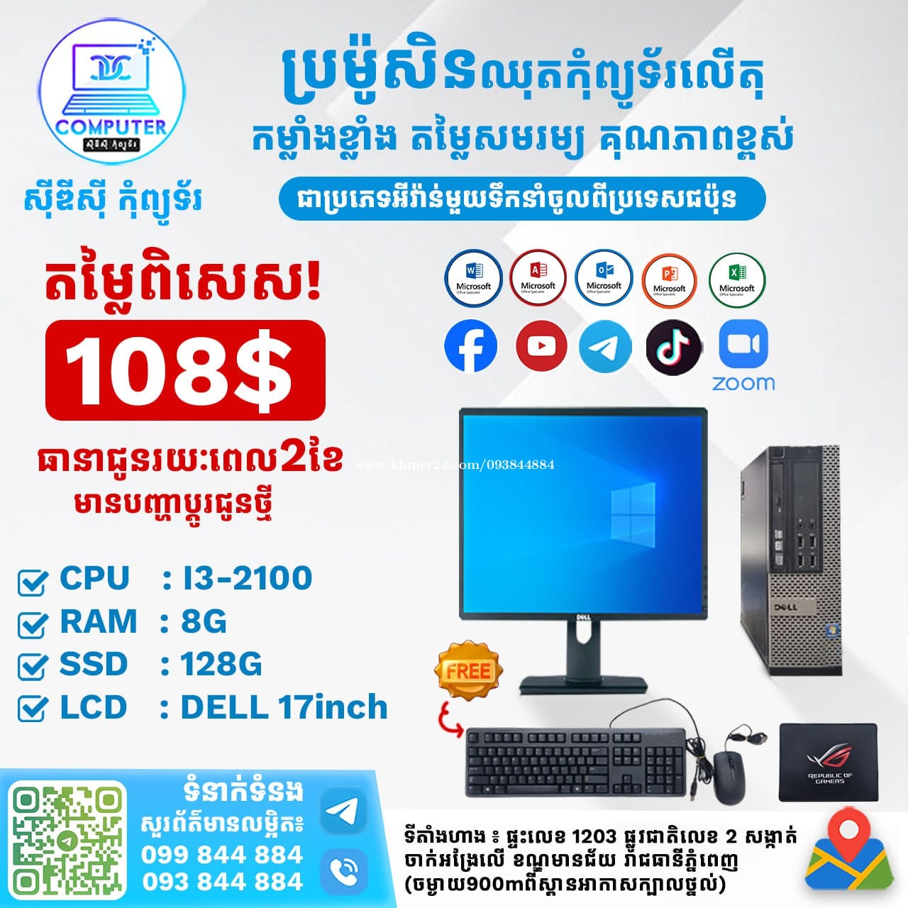 ឈុតកុំព្យូទ័រលើតុ ១ឈុតតម្លៃត្រឹមតែ 108$ CPU I3-2100 RAM 8G SSD 128G LCD DELL 17inch LED ថែមជូន Mouse Keybaord and Mouse Pad ធានារយះពេល 2ខែ អតិថិជនអាចអញ្ញើញមកមើលផ្ទាល់ដល់ទីតាំងហាងបានទំនិញមានស្រាប់មិនបាច់រង់ចាំយូរ! ☎️ទូរស័ព្ទលេខ : Smart093844xxxClick To Call / Cellcard099844xxxClick To Call 📬Telegram : t.me/CDCCOMPUTER093 🏠ទីតាំងហាង : ផ្ទះលេខ 1203 ផ្លូវជាតិលេខ2 , ចាក់អង្រែលើ , ខ័ណ្ឌមានជ័យ , ភ្នំពេញ ( ចំងាយ 900m ពីស្ពានអាកាសក្បាលថ្នល់ ) 📍 Google map : https://maps.app.goo.gl/R3W9thPP5omgsMaZA