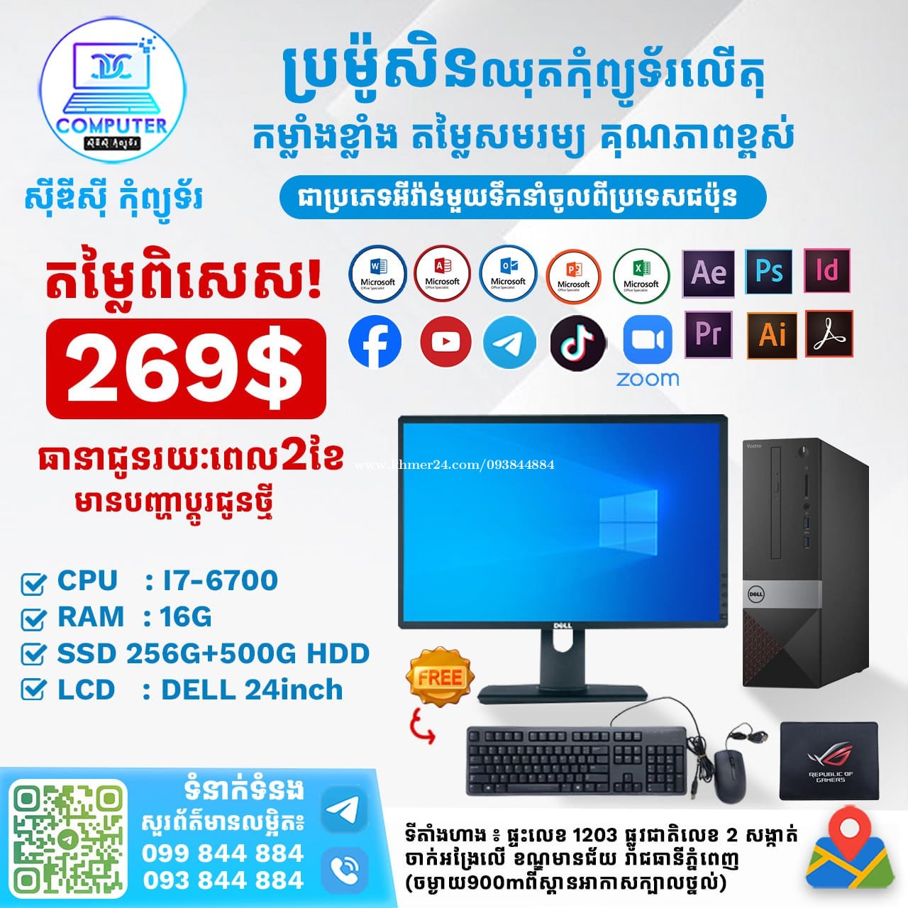 ឈុតកុំព្យូទ័រDELLលើតុ១ឈុតតម្លៃត្រឹមតែ 269$​(CPU i7ជំនាន់ទី6 Ram16G SSD256G+500G Lcd 24")