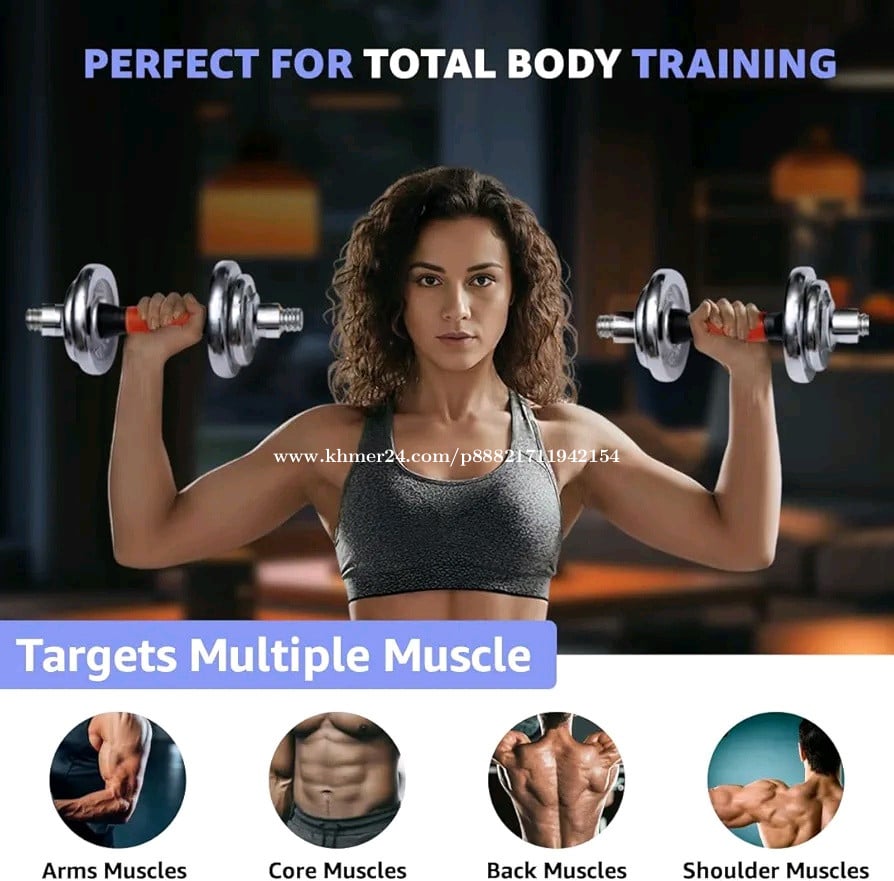 Iron Dumbbell Set, Adjustable Weights, Connecting Rod, Spin Lock Collars, Carrying Case, Home Gym Strength Training equipment for maxpro workout Has 15kg 20kg 30kg & 50kg In 15KG set ( 39$ ) : - Box - 0.5KG * 4 - 1.25KG * 4 - 2.5KG * 4 - Rubber ( Floor protection) Dumbbells rod 2 Middle rod 1 Glove 1 pair * 20kg Set = 50$ * 30KG ( 70$ ) : - Box - 0.5KG * 4 - 1.25KG * 4 - 2.5KG * 8 - Rubber ( Floor protection) Dumbbells rod 2 Middle rod 1 Glove 1 pair BMJ: scan telegram ខាងលើ(រូបភាព) 👉👉👉មានលក់ផលិតផលចម្រុះ scan telegram ខាងលើ ឬចុចlink ខាងក្រោម ដើម្បីសាកសួរផលិតផលជាច្រើន 👉 link website store many products https://www.onlinepayu.com/store 👉Link Telegram https://t.me/BMJj2 👉Link WhatsApp. https://wa.me/qr/2OJVRGCD2HG7J1 👉Tel :092555xxxClick To Call / 070678xxxClick To Call / 0978550xxxClick To Call