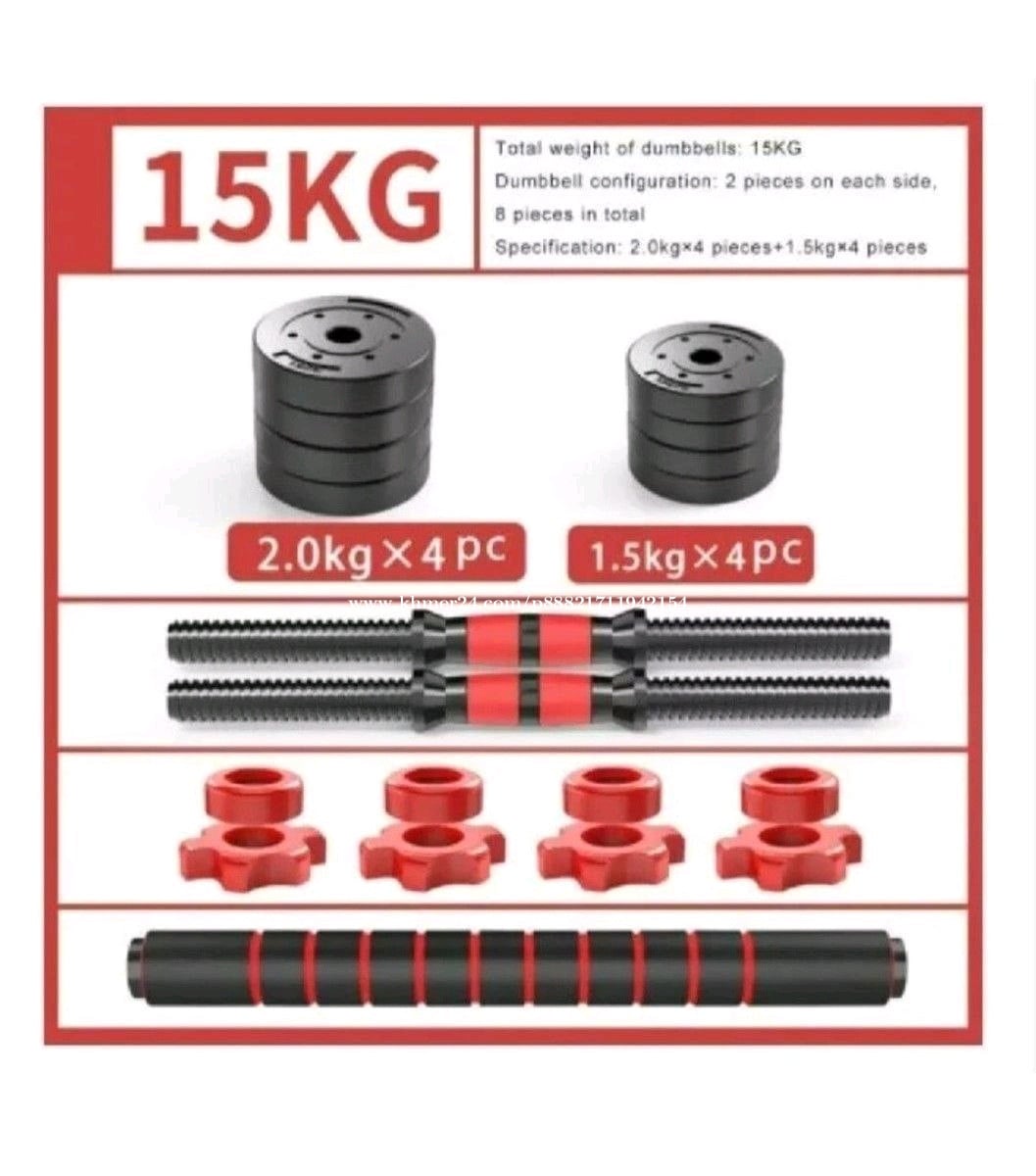 Adjustable dumbbells set 15kg 15kg set has: Dumbbell plates 2KG*4; 1.5KG*4 Connector 40cm, Handle 35cm*2 Anti-loosening nuts*4 មានលក់ផលិតផលចម្រុះ scan telegram ខាងលើ(រូបភាព) scan telegram ខាងលើ(រូបភាព) 👉 link website store many products https://www.onlinepayu.com/store 👉Link Telegram https://t.me/BMJj2 👉Link WhatsApp. https://wa.me/qr/2OJVRGCD2HG7J1 👉Tel :092555xxxClick To Call / 070678xxxClick To Call / 0978550xxxClick To Call