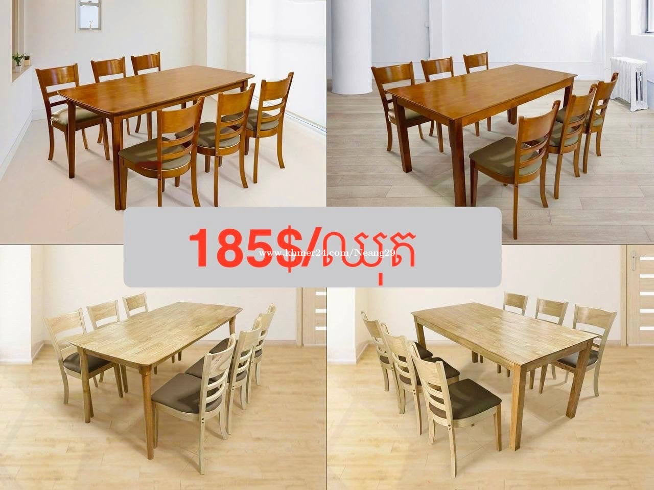ឈុត តុបាយ នឹងកៅអី - តម្លៃ 185$/ឈុត - ជាប្រភេទផលិតផលថ្មី - តុទំហំ 160*80*H75cm - សេវាដឹកភ្នំេពញ 2$ - ការទូទាត់នៅពេលការដឹកជញ្ជូនបានបញ្ចប់ ( ក្នុងក្រុងភ្នំពេញ ) - លេខទំនាក់ទំនង់ : 0887211xxxClick To Call ( telegram ) - interested kindly contact: https://t.me/Khun_NEANg - join our channel : https://t.me/Homefurniture1168