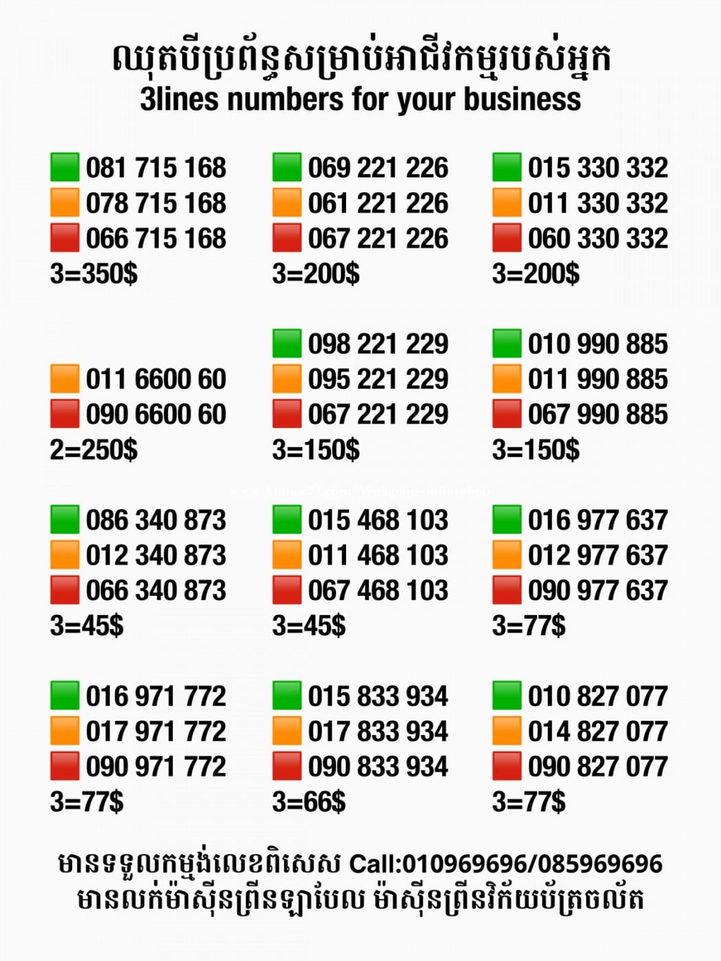 មានលក់លេខពិសេស មានទទួលកម្មង់លេខពិសេស មានលក់ម៉ាស៊ីនព្រីនឡាបែលចល័ត មានលក់ម៉ាស៊ីនព្រីនវិក័យប័ត្រចល័ត មានលក់សម្ភារៈប្រើប្រាស់ក្នុងគ្រួសារ Smart Prime II 1=30$ Smart hero 1=40$ ទូរសព្ទថ្មីក្នុងប្រអប់ លក់ធូរៗរហូតអស់ពីស្តុក អាចប្រើជាឧបករណ៍សម្រាប់ស៊ែរ wifi បាន ទំនាក់ទំនង(ខ្មែរ | English | 中文):010969696 | 085969696 Telegram: https://t.me/W9696 Telegram group: https://t.me/konkonnada អាសយដ្ឋាន:ផ្ទះលេខ២៣ ផ្លូវបេតុងលេខ១ ភូមិទួលពង្រ សង្កាត់ចោមចៅ ខណ្ឌពោធិ៍សែនជ័យ រាជធានីភ្នំពេញ ទីតាំង https://goo.gl/maps/8moqW4iTHUfJEvWQ9 ដើម្បីស្វែងរកលេខអាជីវកម្មដែលលោកអ្នកពេញចិត្ត សូមចូលទៅកាន់:https://www.khmer24.com/Welcome-onlineshop