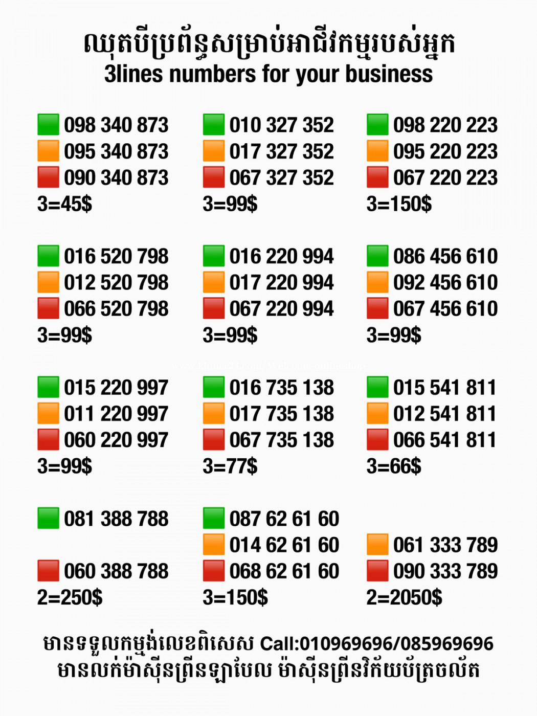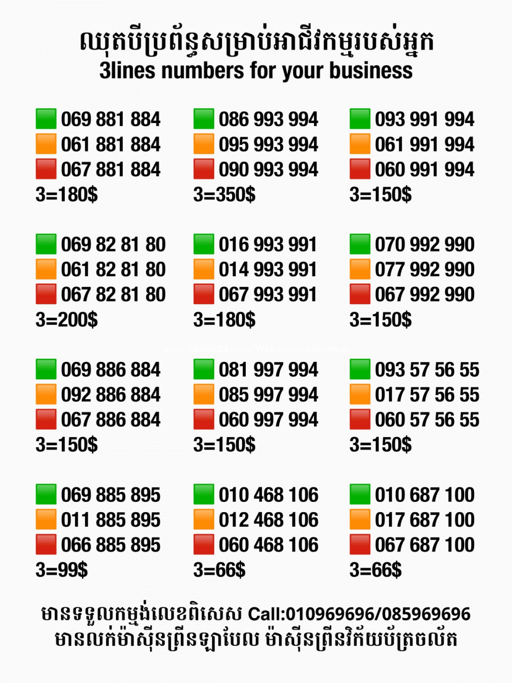 មានលក់លេខពិសេស មានទទួលកម្មង់លេខពិសេស មានលក់ម៉ាស៊ីនព្រីនឡាបែលចល័ត មានលក់ម៉ាស៊ីនព្រីនវិក័យប័ត្រចល័ត មានលក់សម្ភារៈប្រើប្រាស់ក្នុងគ្រួសារ Smart Prime II 1=30$ Smart hero 1=40$ ទូរសព្ទថ្មីក្នុងប្រអប់ លក់ធូរៗរហូតអស់ពីស្តុក អាចប្រើជាឧបករណ៍សម្រាប់ស៊ែរ wifi បាន ទំនាក់ទំនង(ខ្មែរ | English | 中文):010969696 | 085969696 Telegram: https://t.me/W9696 Telegram group: https://t.me/konkonnada អាសយដ្ឋាន:ផ្ទះលេខ២៣ ផ្លូវបេតុងលេខ១ ភូមិទួលពង្រ សង្កាត់ចោមចៅ ខណ្ឌពោធិ៍សែនជ័យ រាជធានីភ្នំពេញ ទីតាំង https://goo.gl/maps/8moqW4iTHUfJEvWQ9 ដើម្បីស្វែងរកលេខអាជីវកម្មដែលលោកអ្នកពេញចិត្ត សូមចូលទៅកាន់:https://www.khmer24.com/Welcome-onlineshop