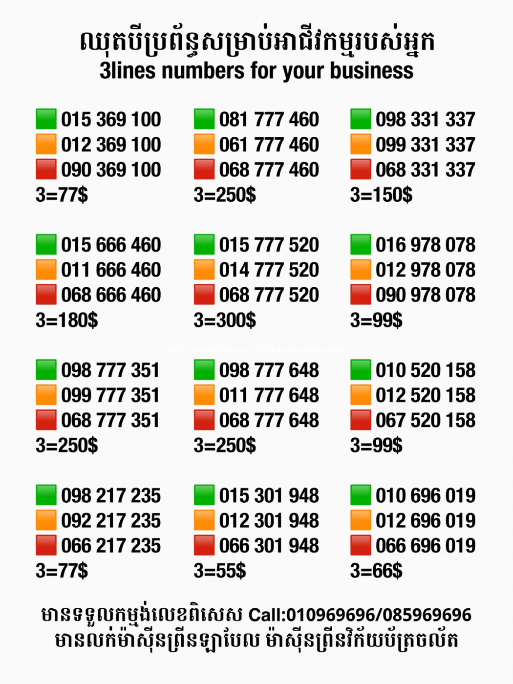 មានលក់លេខពិសេស មានទទួលកម្មង់លេខពិសេស មានលក់ម៉ាស៊ីនព្រីនឡាបែលចល័ត មានលក់ម៉ាស៊ីនព្រីនវិក័យប័ត្រចល័ត មានលក់សម្ភារៈប្រើប្រាស់ក្នុងគ្រួសារ Smart Prime II 1=30$ Smart hero 1=40$ ទូរសព្ទថ្មីក្នុងប្រអប់ លក់ធូរៗរហូតអស់ពីស្តុក អាចប្រើជាឧបករណ៍សម្រាប់ស៊ែរ wifi បាន ទំនាក់ទំនង(ខ្មែរ | English | 中文):010969696 | 085969696 Telegram: https://t.me/W9696 Telegram group: https://t.me/konkonnada អាសយដ្ឋាន:ផ្ទះលេខ២៣ ផ្លូវបេតុងលេខ១ ភូមិទួលពង្រ សង្កាត់ចោមចៅ ខណ្ឌពោធិ៍សែនជ័យ រាជធានីភ្នំពេញ ទីតាំង https://goo.gl/maps/8moqW4iTHUfJEvWQ9 ដើម្បីស្វែងរកលេខអាជីវកម្មដែលលោកអ្នកពេញចិត្ត សូមចូលទៅកាន់:https://www.khmer24.com/Welcome-onlineshop