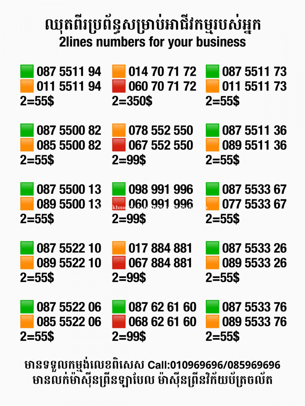 មានលក់លេខពិសេស មានទទួលកម្មង់លេខពិសេស មានលក់ម៉ាស៊ីនព្រីនឡាបែលចល័ត មានលក់ម៉ាស៊ីនព្រីនវិក័យប័ត្រចល័ត មានលក់សម្ភារៈប្រើប្រាស់ក្នុងគ្រួសារ Smart Prime II 1=30$ Smart hero 1=40$ ទូរសព្ទថ្មីក្នុងប្រអប់ លក់ធូរៗរហូតអស់ពីស្តុក អាចប្រើជាឧបករណ៍សម្រាប់ស៊ែរ wifi បាន ទំនាក់ទំនង(ខ្មែរ | English | 中文):010969696 | 085969696 Telegram: https://t.me/W9696 Telegram group: https://t.me/konkonnada អាសយដ្ឋាន:ផ្ទះលេខ២៣ ផ្លូវបេតុងលេខ១ ភូមិទួលពង្រ សង្កាត់ចោមចៅ ខណ្ឌពោធិ៍សែនជ័យ រាជធានីភ្នំពេញ ទីតាំង https://goo.gl/maps/8moqW4iTHUfJEvWQ9 ដើម្បីស្វែងរកលេខអាជីវកម្មដែលលោកអ្នកពេញចិត្ត សូមចូលទៅកាន់:https://www.khmer24.com/Welcome-onlineshop