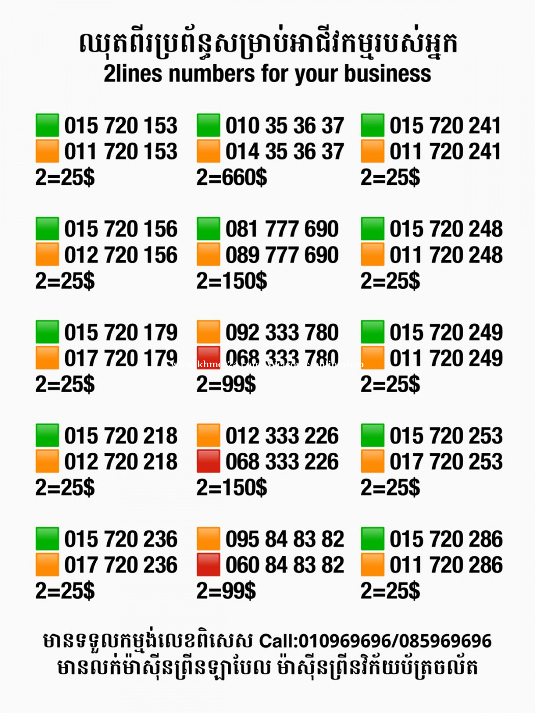 មានលក់លេខពិសេស មានទទួលកម្មង់លេខពិសេស មានលក់ម៉ាស៊ីនព្រីនឡាបែលចល័ត មានលក់ម៉ាស៊ីនព្រីនវិក័យប័ត្រចល័ត មានលក់សម្ភារៈប្រើប្រាស់ក្នុងគ្រួសារ Smart Prime II 1=30$ Smart hero 1=40$ ទូរសព្ទថ្មីក្នុងប្រអប់ លក់ធូរៗរហូតអស់ពីស្តុក អាចប្រើជាឧបករណ៍សម្រាប់ស៊ែរ wifi បាន ទំនាក់ទំនង(ខ្មែរ | English | 中文):010969696 | 085969696 Telegram: https://t.me/W9696 Telegram group: https://t.me/konkonnada អាសយដ្ឋាន:ផ្ទះលេខ២៣ ផ្លូវបេតុងលេខ១ ភូមិទួលពង្រ សង្កាត់ចោមចៅ ខណ្ឌពោធិ៍សែនជ័យ រាជធានីភ្នំពេញ ទីតាំង https://goo.gl/maps/8moqW4iTHUfJEvWQ9 ដើម្បីស្វែងរកលេខអាជីវកម្មដែលលោកអ្នកពេញចិត្ត សូមចូលទៅកាន់:https://www.khmer24.com/Welcome-onlineshop
