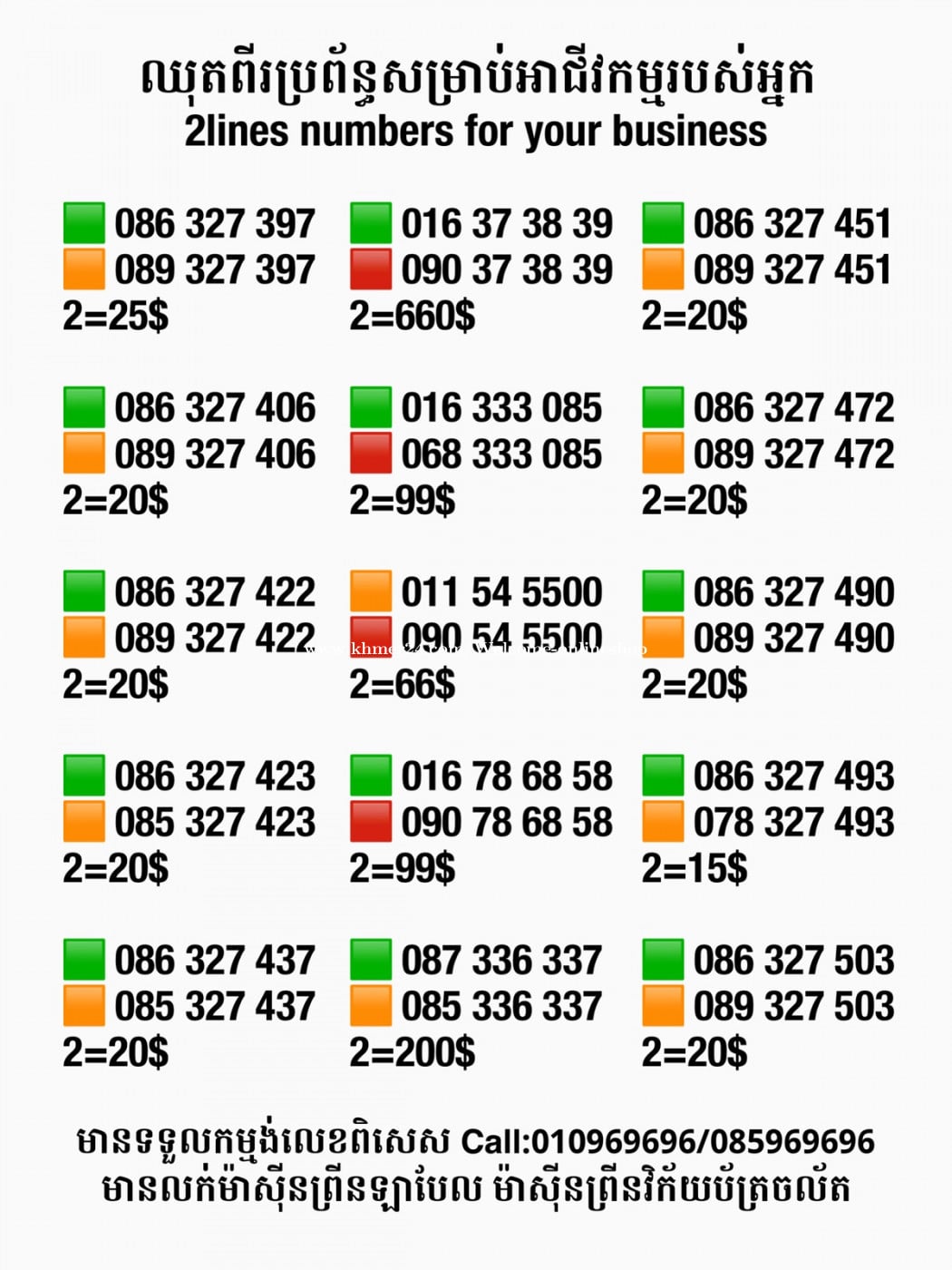 មានលក់លេខពិសេស មានទទួលកម្មង់លេខពិសេស មានលក់ម៉ាស៊ីនព្រីនឡាបែលចល័ត មានលក់ម៉ាស៊ីនព្រីនវិក័យប័ត្រចល័ត មានលក់សម្ភារៈប្រើប្រាស់ក្នុងគ្រួសារ Smart Prime II 1=30$ Smart hero 1=40$ ទូរសព្ទថ្មីក្នុងប្រអប់ លក់ធូរៗរហូតអស់ពីស្តុក អាចប្រើជាឧបករណ៍សម្រាប់ស៊ែរ wifi បាន ទំនាក់ទំនង(ខ្មែរ | English | 中文):010969696 | 085969696 Telegram: https://t.me/W9696 Telegram group: https://t.me/konkonnada អាសយដ្ឋាន:ផ្ទះលេខ២៣ ផ្លូវបេតុងលេខ១ ភូមិទួលពង្រ សង្កាត់ចោមចៅ ខណ្ឌពោធិ៍សែនជ័យ រាជធានីភ្នំពេញ ទីតាំង https://goo.gl/maps/8moqW4iTHUfJEvWQ9 ដើម្បីស្វែងរកលេខអាជីវកម្មដែលលោកអ្នកពេញចិត្ត សូមចូលទៅកាន់:https://www.khmer24.com/Welcome-onlineshop