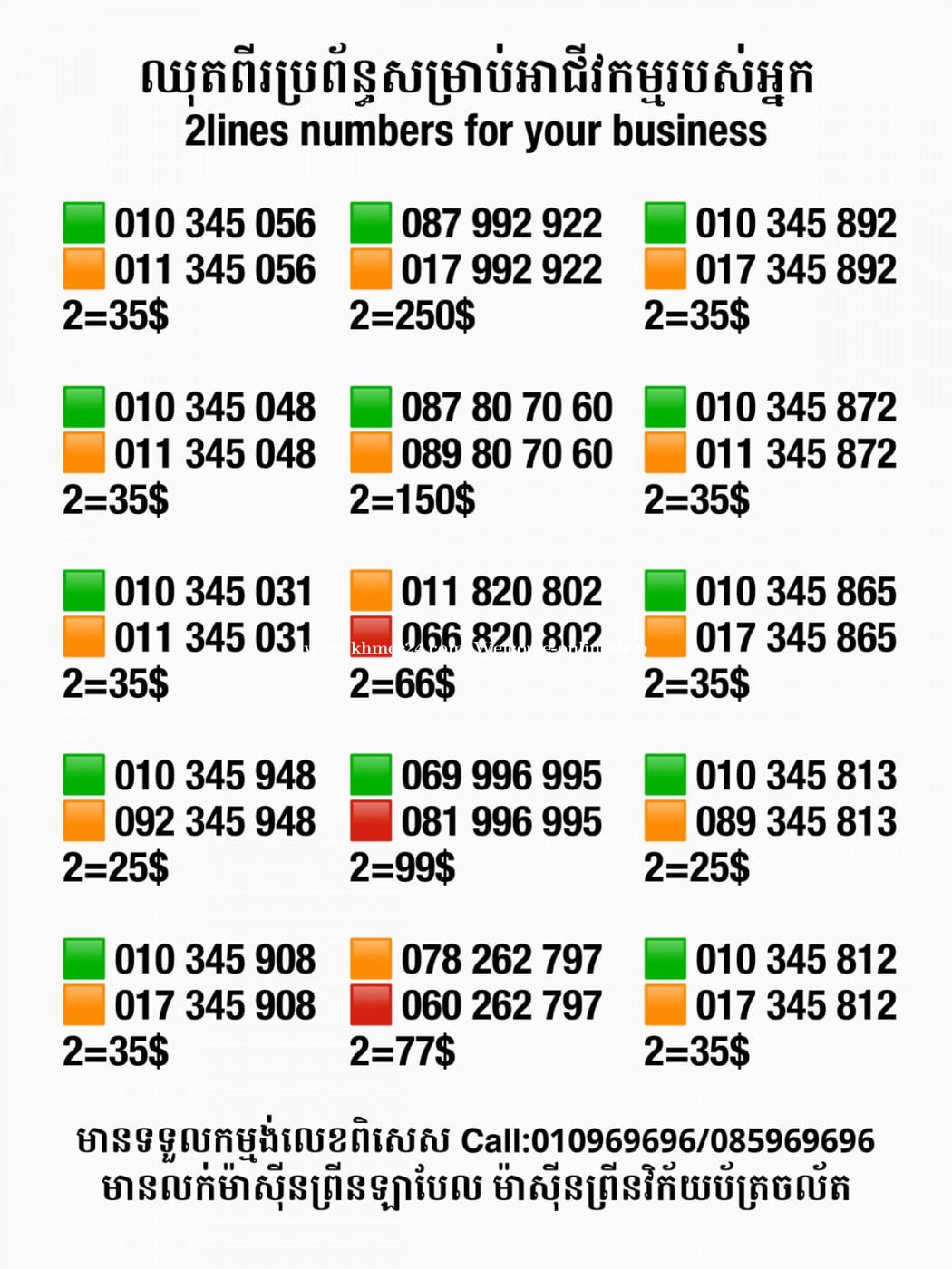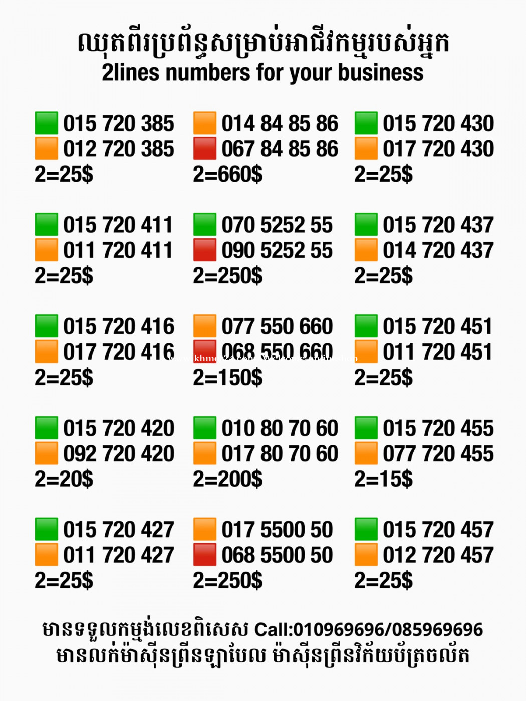 មានលក់លេខពិសេស មានទទួលកម្មង់លេខពិសេស មានលក់ម៉ាស៊ីនព្រីនឡាបែលចល័ត មានលក់ម៉ាស៊ីនព្រីនវិក័យប័ត្រចល័ត មានលក់សម្ភារៈប្រើប្រាស់ក្នុងគ្រួសារ Smart Prime II 1=30$ Smart hero 1=40$ ទូរសព្ទថ្មីក្នុងប្រអប់ លក់ធូរៗរហូតអស់ពីស្តុក អាចប្រើជាឧបករណ៍សម្រាប់ស៊ែរ wifi បាន ទំនាក់ទំនង(ខ្មែរ | English | 中文):010969696 | 085969696 Telegram: https://t.me/W9696 Telegram group: https://t.me/konkonnada អាសយដ្ឋាន:ផ្ទះលេខ២៣ ផ្លូវបេតុងលេខ១ ភូមិទួលពង្រ សង្កាត់ចោមចៅ ខណ្ឌពោធិ៍សែនជ័យ រាជធានីភ្នំពេញ ទីតាំង https://goo.gl/maps/8moqW4iTHUfJEvWQ9 ដើម្បីស្វែងរកលេខអាជីវកម្មដែលលោកអ្នកពេញចិត្ត សូមចូលទៅកាន់:https://www.khmer24.com/Welcome-onlineshop