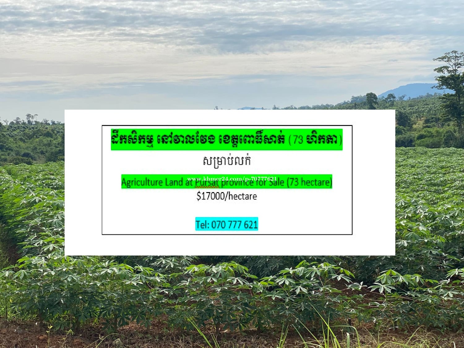 欲出售菩萨省Veal Veng 区的农业用地(土地非常肥沃),面积为73公顷,种植牛油果、橙子等农作物。有意者电话联系,070777xxxClick To Call,谢谢。 ខ្ញុំចង់លក់ដីចម្ការ (ដីវាល មានជីជាតិខ្លាំង ជាដីកំណប់ទ្រព្យ) នៅស្រុកវាលវែង ខេត្តពោធិ៍សាត់ ទំហំ 73 ហិចតា ( 1ហិចតា $17000) អាចដាំទុរេន ប័រ ក្រូចពោធិ៍សាត់ ។ល។ មានអូរហូរឆ្លងកាត់។ លេខទំនាក់ទំនង 070777xxxClick To Call. I want to sell my agriculture land 73 hectares (1 hectare = $17000). Can grow durian, avocado, orange, etc. It's very fertile. It's located at Veal Veng district, Pursat province. Have a canal crossing the land. Please call 070777xxxClick To Call. Thanks.