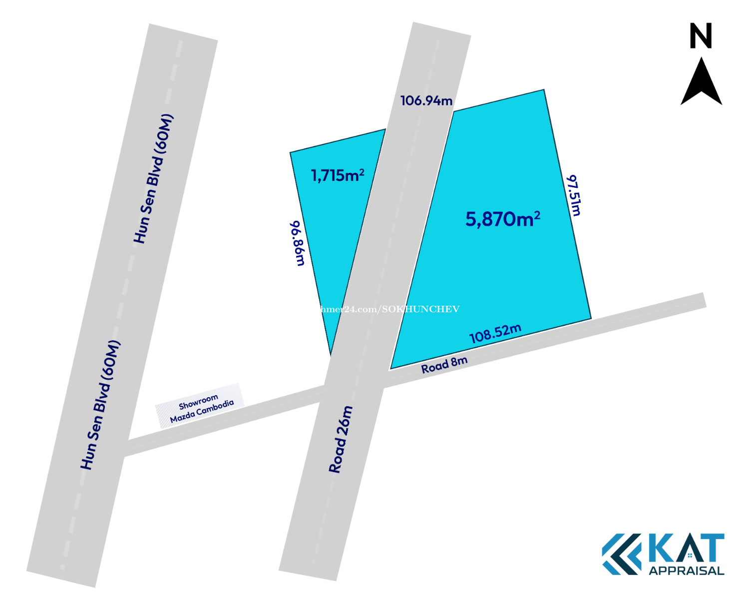 ដីកែងលក់ក្បែរMazda Showroom Land for sale near Mazda showroom along st 10m and 26m Asking price : 880$/sqm Total size : 5870sqm+1715sqm (7585sqm) Tel: 092883xxxClick To Call l 081883xxxClick To Call Telegram Chat : https://t.me/katappraisalsupport Telegram Channel : https://t.me/KAT_APPRAISAL