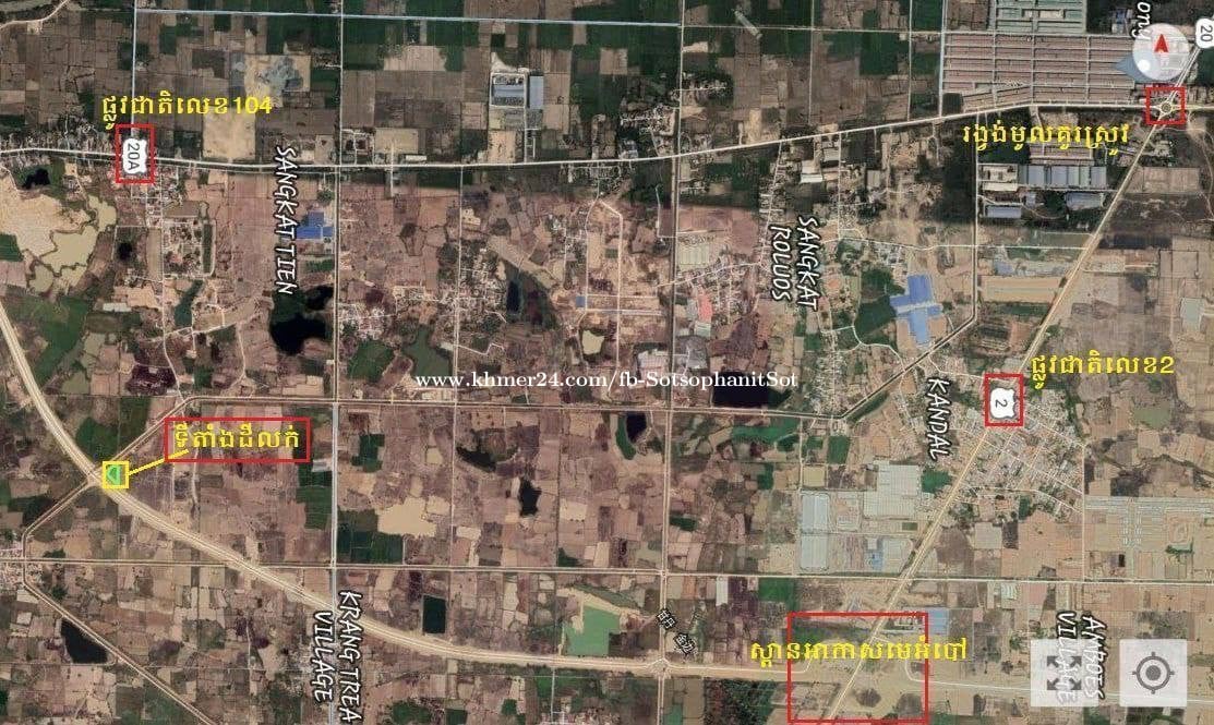 ដីកែងផ្លូវបីជាប់នឹងផ្លូវ60m ផ្លូវ50m នឹងផ្លូវ8m លក់បន្ទាន់(ទីតាំងពិសេសខ្លាំង)ម្ចាស់ផ្ទាល់ ជាប់ផ្លូវក្រវ៉ាត់ក្រុងទី3(60m) ប្រវែង57.44m ជាប់ផ្លូវប្រលាយជប៉ុន(50m) ប្រវែង59.21m ជាប់ផ្លូវរដ្ធ 8m ប្រវែង78.33m ទំហំ 1892m2 (កាត់ចំនីផ្លូវរួច) តំម្លៃ 1m2/320$ (ប្លង់រឹង) -ទីតាំងដីនេះល្អខ្លាំងសំរាប់បើការ៉ាសសាំង -ជិតរង្វង់មូលគួរស្រូវនឹងស្ពានអាកាសមេអំបៅក្រវ៉ាត់ក្រុងទី3នឹងផ្លូវជាតិលេខ2 -ជិតផ្លូវជាតិលេខ104 ដែលឆ្ពោះទៅផ្លូវជាតិលេខ3