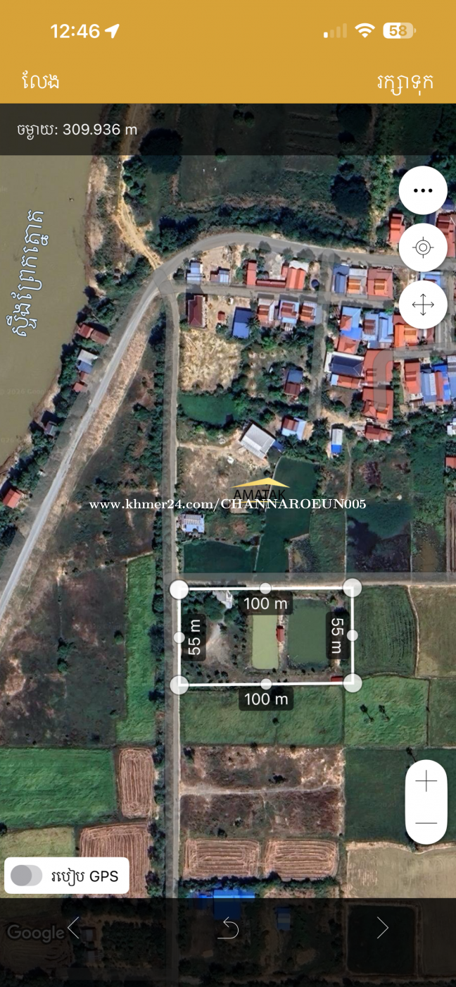 ដីកែងសំរាប់លក់ 5510sqm ចូលពីផ្លូវ104 ចំងាយ750m 90$/sqm ទទឹង55x100 កែងផ្លូវ16m និង8M អាចសាងសង់ អគារ រោងចក្រ ឃ្លាំង ។ល។
