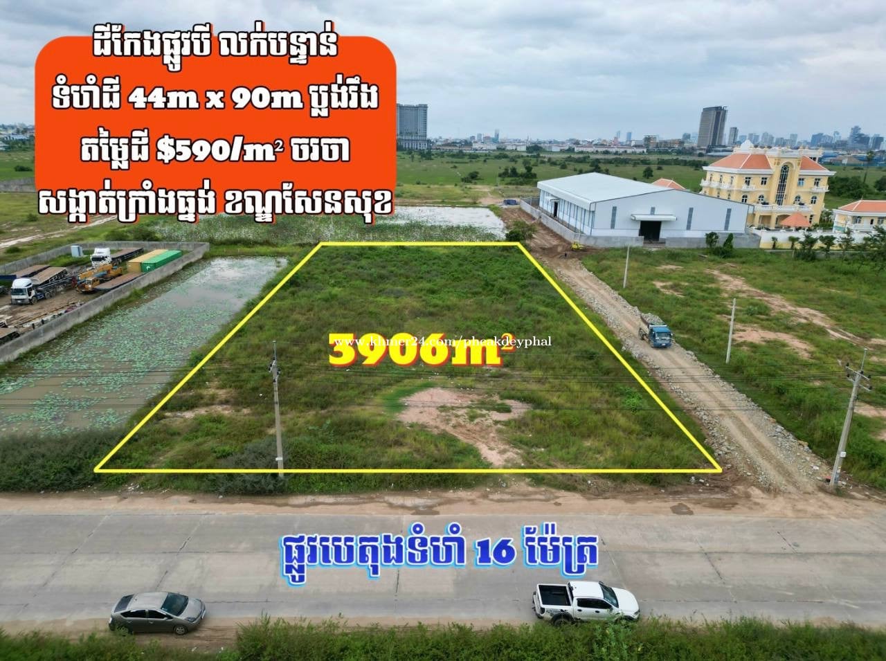 ដីលក់ លើផ្លូវបេតុង ១៦ ម៉ែត្រ (ផ្លូវបី) ✅តម្លៃលក់ : $590/ឞ ✅ទំហំដី : 44m * 90m (3906 m2) ✅សង្កាត់ក្រាំងធ្នង់ ខណ្ឌសែនសុខ ☎️ 089577xxxClick To Call /016651xxxClick To Call https://t.me/phal_pheakdey_realtor https://maps.app.goo.gl/u4Cxj2ryxdjtrXMA6?g_st=com.google.maps.preview.copy