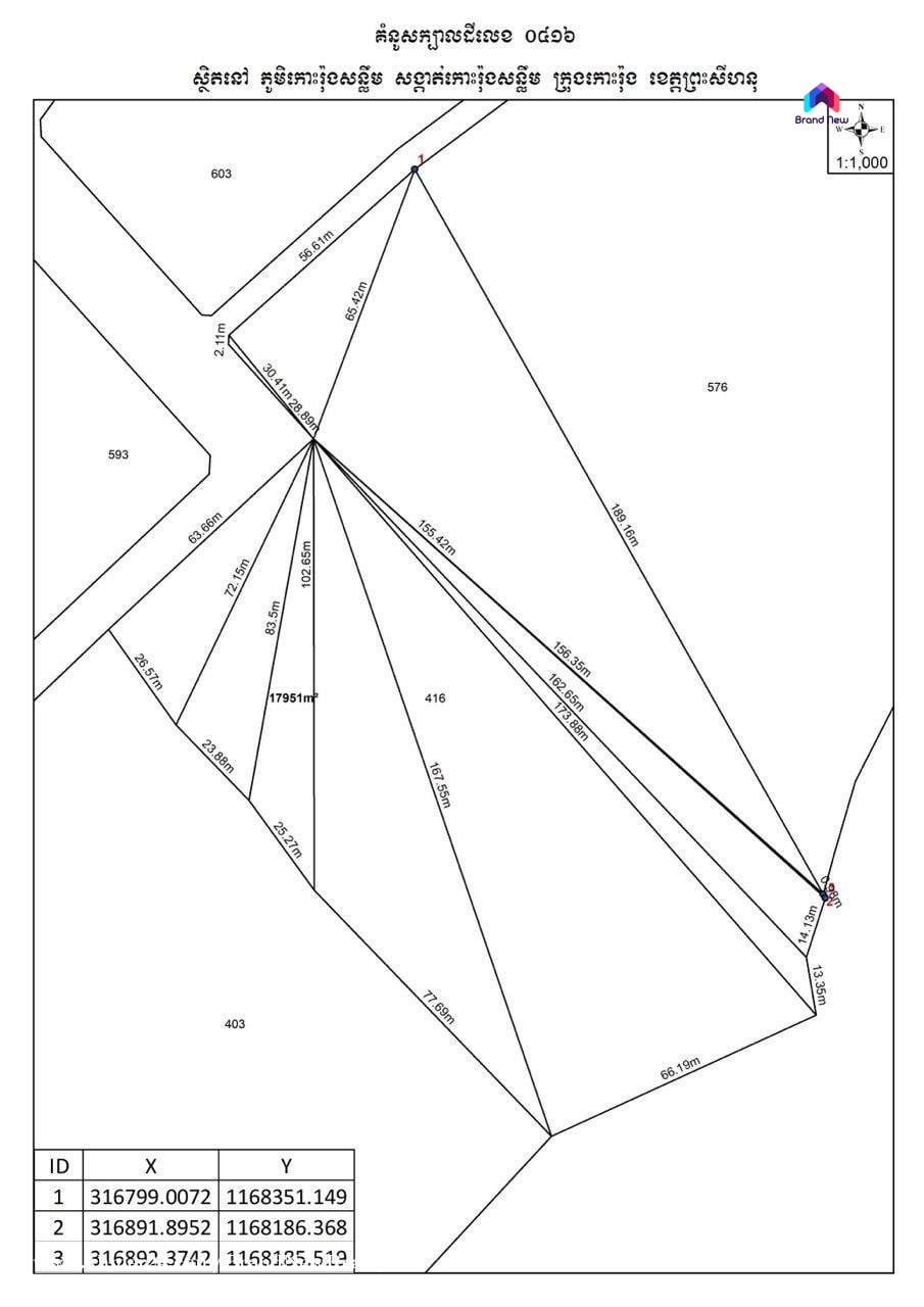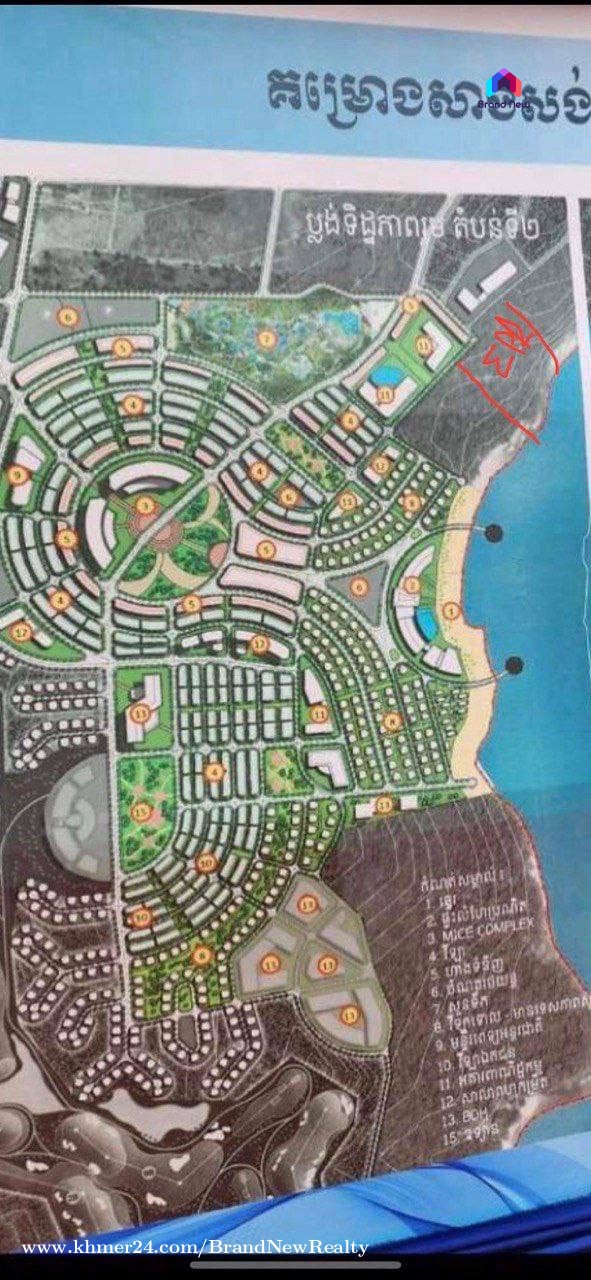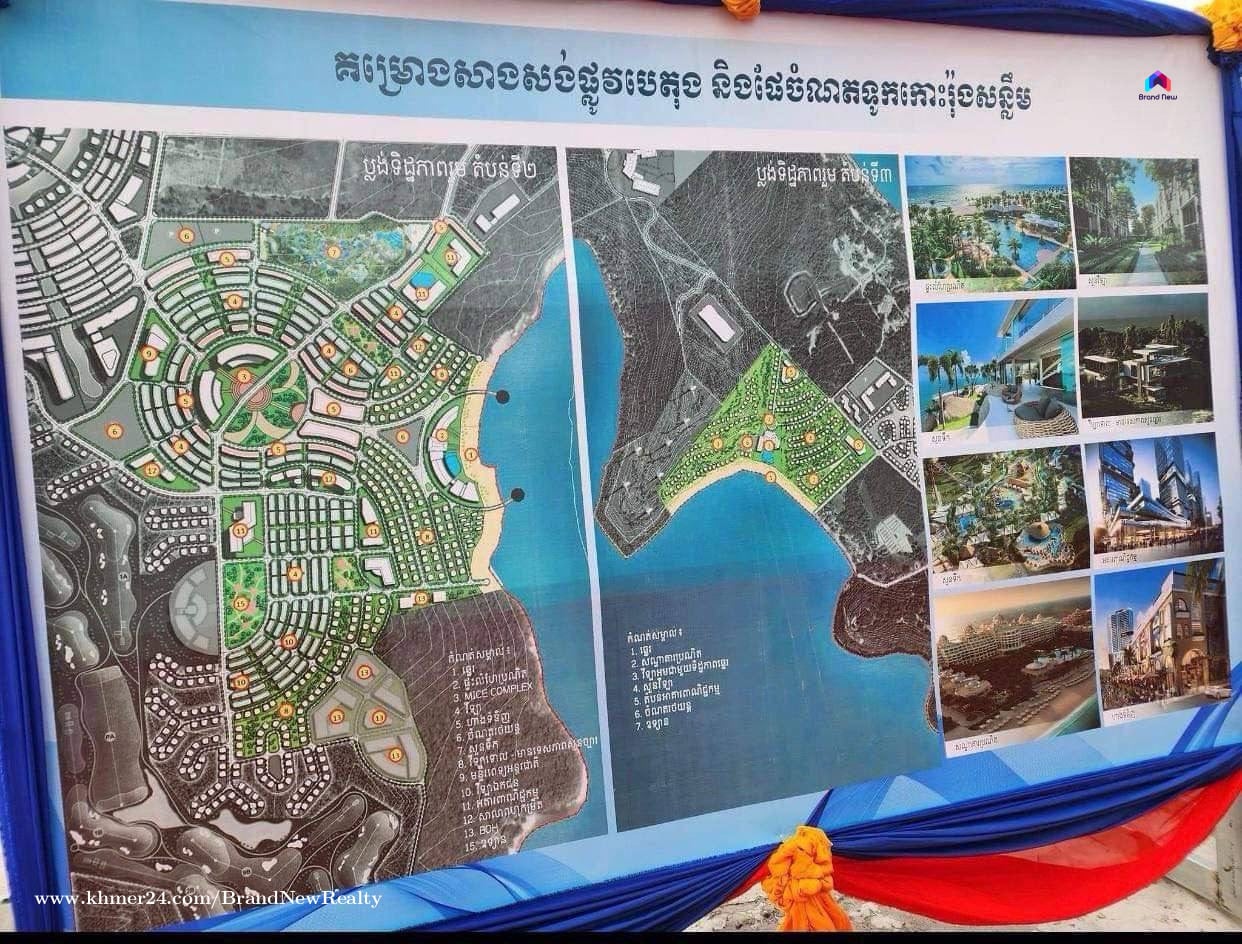 ដីលក់នៅកំពុងសោម ក្នុងកោះរ៉ុងសន្លឹម ទំហំដីសរុប 17,951m2 ជាប់មាត់ឆ្នេរ តម្លៃលក់ 1m2= 290$
