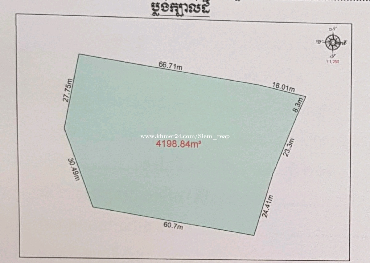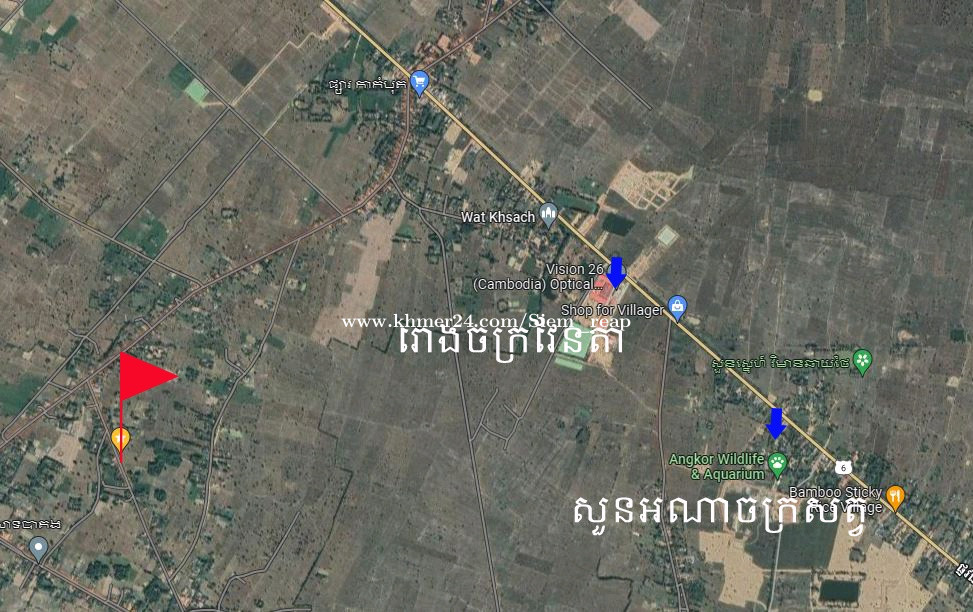 💥សៀមរាប៖ ដីលក់បន្ទាន់ខ្លាំង! English below ទីតាំងខាងកើតប្រាសាទបាគងប្រហែល 15គម ខាងក្រោយមជ្ឈមណ្ឌលកំសាន្តអាណាចក្រសត្វ។ លើផ្លូវធំទទឹង 30ម៉ែត្រ ។មានភ្លើងរដ្ឋដល់មុខដីស្រាប់។ - ទំហំសរុប 4,198m2 (~58×~84) - លក់ តំលៃ $28/ការ៉េ ម្ចាស់ផ្ទាល់ 012885xxxClick To Call (Telegram) Siem Reap land urgently sale. -About 25km east of siem Reap town. - Road size 30meters - Has government's electricity. - Behind Angkor Wildlife & Aquarium. - Total size: 4,198sqm (~58*~84) - Sale price: $28/sqm - Mobile: 012885xxxClick To Call ទីតាំង៖ 13°17'03.0"N 104°02'18.4"E https://goo.gl/maps/dPU2uiFc15ydorNt8