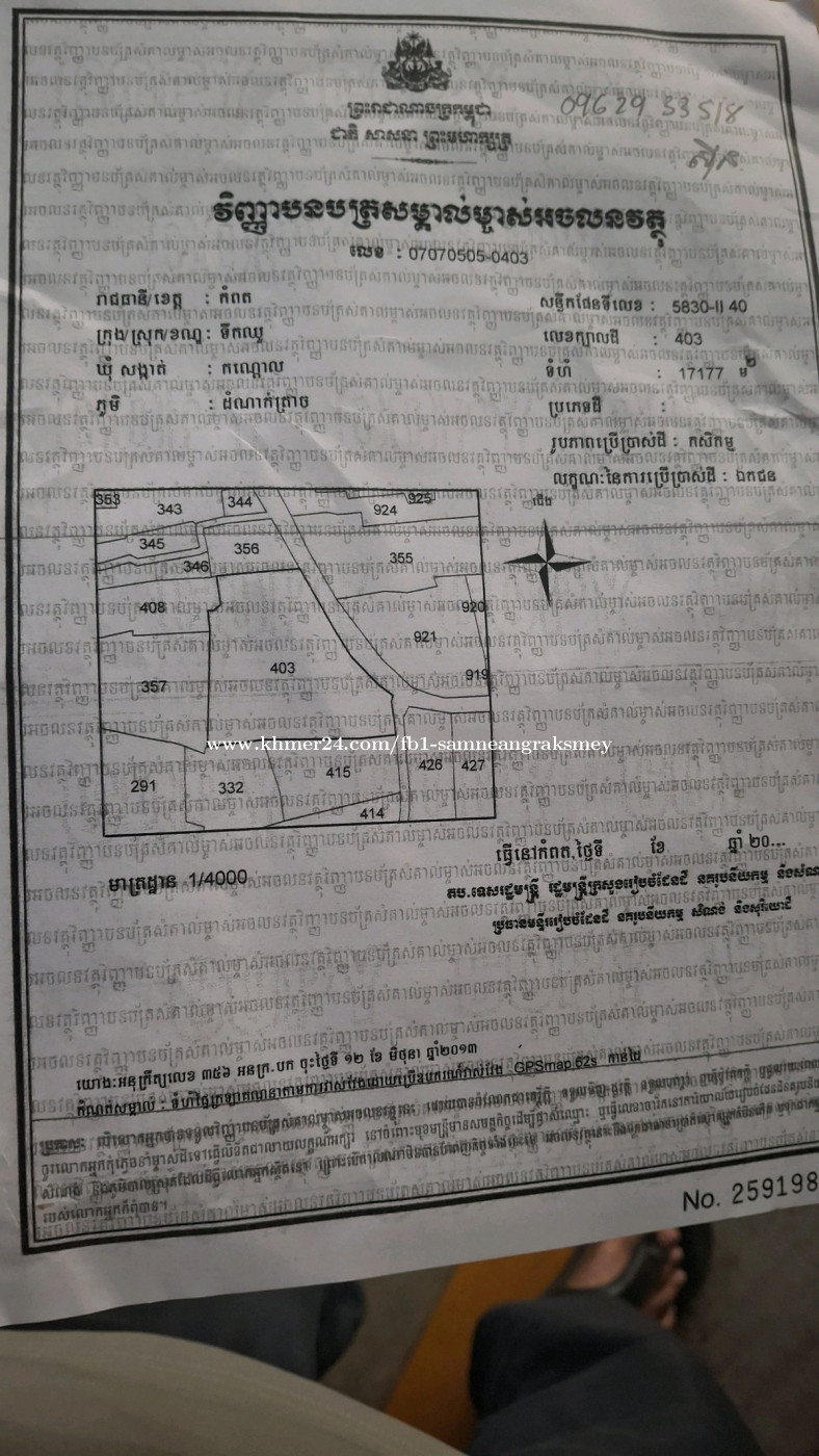 ដីលក់ចំការដូង ស្រុកទឹកឈូ ខេត្តកំពត ទំហំ ក្បាល168ម៉ែត្រ x 155ម៉ែត្រ x 88ម៉ែត្រ ដំណាំ ដូង480ដើម ធុរេន 10ដើម ក្រូច ក្រញូងតាមរបង និង ភ្លើងទឹកគ្រប់គ្រាន់ 070848xxxClick To Call