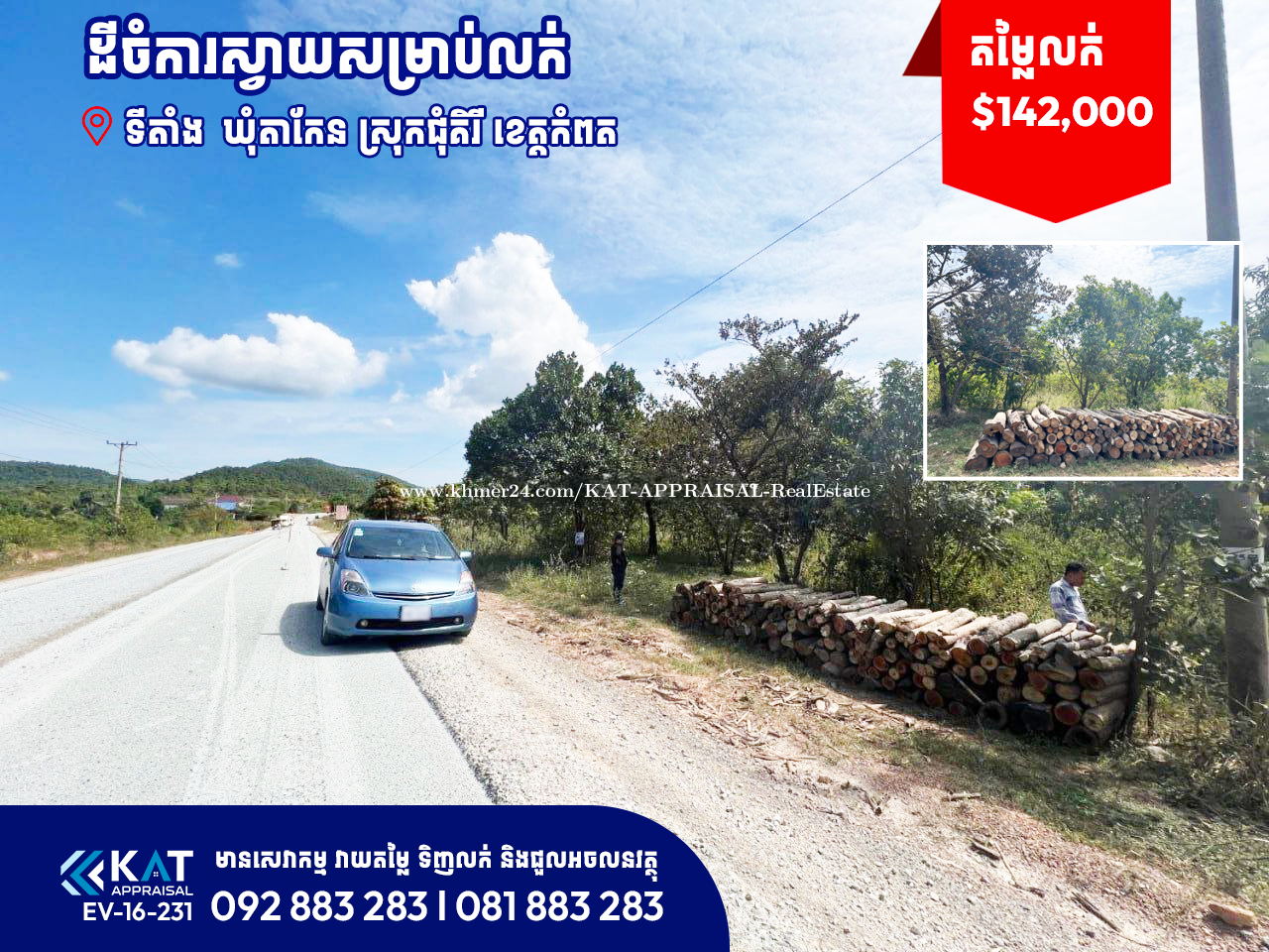 ដីចំការស្វាយសម្រាប់លក់ | Land For Sale - ទំហំ | Land Size: 7,827m2 - តម្លៃដាក់លក់ | Sale Price: 142,000 ចរចារ - ក្បាលដីជាប់ផ្លូវ 77m (គំរោងផ្លូវកៅស៊ូ ៣០ម៉ែត្រ) - មានដើមស្វាយជាង 100ដើម - ត្រឹម ៩០០ម៉ែត្រពី រម្មណីយដ្ឋាន ធម្មជាតិ បង្កងជុំគីរី (រីស៊ត តាកែនកោះស្លា) » ទីតំាង/ Location: ឃុំតាកែន ស្រុកជុំគិរី ខេត្ដកំពត ។ Tel: 092883xxxClick To Call l 081883xxxClick To Call Telegram Chat : https://t.me/katappraisalsupport Telegram Channel : https://t.me/KAT_APPRAISAL