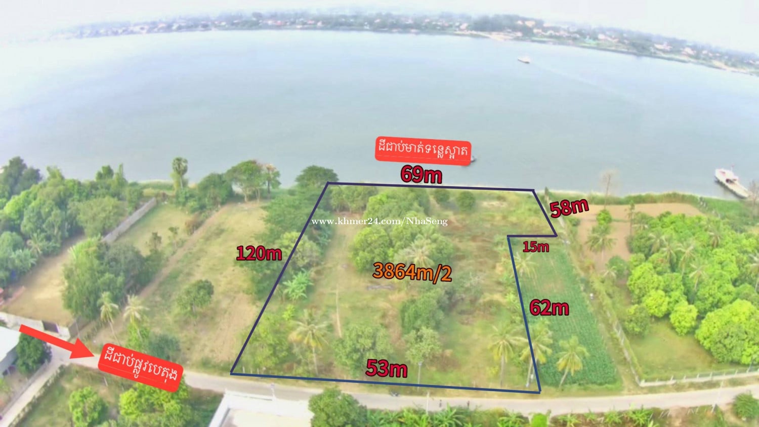 🏡ដីជាប់មាត់ទន្លេស្អាតជាប់ផ្លូវបេតុង !!! 📍ទីតាំងនៅភូមិពុកឫស្សីក្រោម ឃុំពុកឬស្សី ស្រុកខ្សាច់កណ្ដាល ខេត្ដកណ្ដាល ។ 📏ទំហំ: 3864m²(ដូចមានក្នុងប្លង់ជើងម៉េត្រ) 💰តម្លៃ: 1 ,900,000 $ ចរចា 📑 មានប្លង់បង្កាន់ដៃ (ផ្ទេរសិទិ្ធប្លង់រឹង) 🛣️ដីជាប់មាត់ទន្លេទេសភាពស្អាត អាចធ្វើជាផ្ទះលំហែបាន ដីម្ចាស់ដើមផ្ទាល់តម្លៃក្រោមទីផ្សារ!! ☎️ សម្រាប់ពត៍មានលំអិតសូមទូរស័ព្ទមកលេខ 📲 077236xxxClick To Call 📲 0968222xxxClick To Call (Telegram) 👉ទំនាក់ទំនងតាមTelegram ខាងក្រោម 👇👇👇 https://t.me/panhaseng