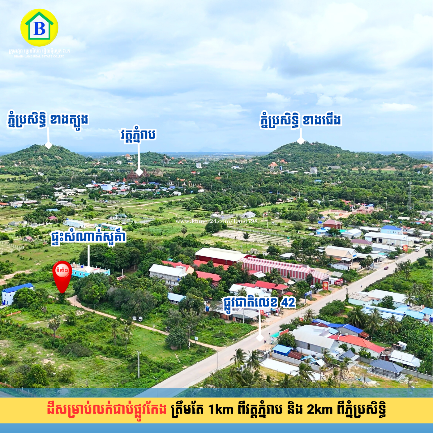 ដីជាប់ផ្លូវកែង ត្រឹមតែ 100m ចុះពីផ្លូវជាតិលេខ 42 ខណ្ឌព្រែកព្នៅ 📺វីដេអូនិយាយក្នុង YouTube https://youtu.be/JuCL1Hn8550 * តម្លៃលក់ | Price: $36,000 ចរចា . ទំហំ | Size : 15m x 27.5m = 412m²(ទំហំក្នុងប្លង់) . ទំហំផ្លូវកែង 6m (មានប្រព័ន្ធទឹកភ្លើង និងលូ) * កម្មសិទ្ធិប្លង់ រឹង (ចរចារត្រូវកាត់ប្លង់ជូន) ស្ថិតនៅតំបន់ដែលមានប្រជាជនរស់នៅច្រើនអ៊ូអរជិត: ផ្សារ រោងចក្រ មន្ទីររដ្ឋ សាលារៀន វត្តអារាម ឃ្លាំង បុរី -ល-។ 📍ទីតាំងដី៖ https://maps.app.goo.gl/2XmSxPwnyfDVdvJL7 + យើងខ្ញុំមានសេវាធនាគារល្អៗជូន បើសិនជាអតិថិជនត្រូវការ។ 💁សំរាប់ពត៌មានលំអិតផ្សេងៗ៖ 📲092765xxxClick To Call /Cellcard 📲0967000xxxClick To Call /Smart 📲098765xxxClick To Call /Smart -Telegram ផ្ទាល់ខ្លួន https://t.me/phanna798 -Telegram Channel https://t.me/Land798 -Facebook page https://web.facebook.com/Land798