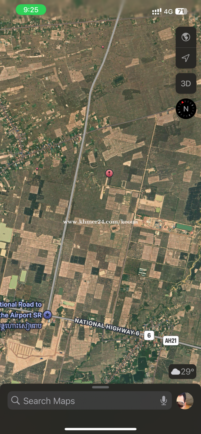 ដីស្រែលក់ ទំហំ មួយហិចតា ជិតផ្លូវប្រលានយន្តហោះថ្មី សៀមរាប នៅខាងមុខ មជ្ឈះមណ្ឍល មីន សុីម៉ាក់ ចុះពីផ្លូវជាតិ លេខ6A 2km ស្ថិតនៅ ក្នុង ឃុំ កន្ត្រាំង ស្រុក ប្រាសាទបាគង Call or telegram Celcard : 099698xxxClick To Call Metfone : 060698xxxClick To Call.