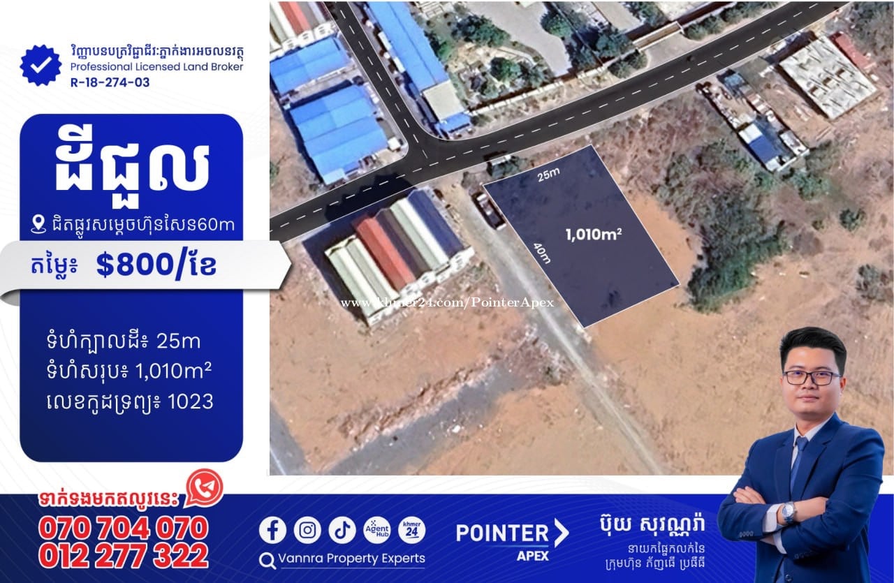 ដីជួលជិតផ្លូវសម្តេចហ៊ុនសែន60m សម្រាប់ជួល: $800/ខែ ទំហំដី: 25m x 40m ទំហំដីសរុប: 1,010m² 🔐លេខកូដអចលនវត្ថុ៖ 1023 ស្ថិតនៅលើផ្លូវបេតុង សង្កាត់ចាក់អង្រែក្រោម ខណ្ឌដង្កោ ភ្នំពេញ ——————————— ទាក់ទងមកឥលូវនេះ៖ Call: 070704xxxClick To Call / 012277xxxClick To Call Telegram: https://t.me/vannraaa 微信号: vannra-experts - Channel: https://t.me/vannrapropertyexperts - Tiktok: https://www.tiktok.com/@vannra_property_experts - Facebook: https://www.facebook.com/vannra.phnompenh.property/