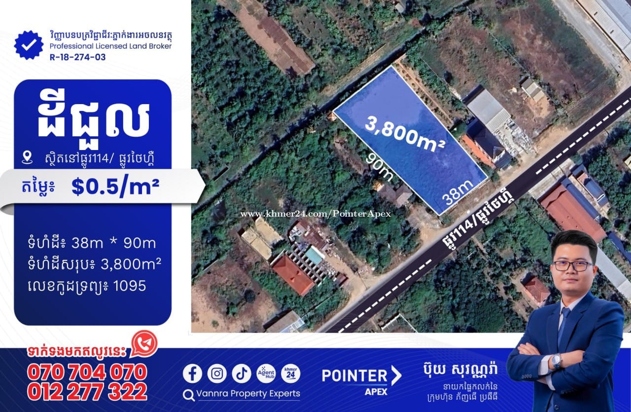 ដីជួលនៅលើផ្លូវ114/ផ្លូវថៃហ្គឺ សម្រាប់ជួល: 0.5/m² ទំហំដី: 38m x 90m ទំហំដីសរុប: 3,800m² 🔐លេខកូដអចលនវត្ថុ៖ 1095 ស្ថិតនៅលើផ្លូវលេខ114/ផ្លូវថៃហ្គឺ សង្កាត់ព្រែកឯក ខណ្ឌច្បារអំពៅ ភ្នំពេញ ——————————— ទាក់ទងមកឥលូវនេះ៖ Call: 070704xxxClick To Call / 012277xxxClick To Call Telegram: https://t.me/vannraaa 微信号: vannra-experts - Channel: https://t.me/vannrapropertyexperts - Tiktok: https://www.tiktok.com/@vannra_property_experts - Facebook: https://www.facebook.com/vannra.phnompenh.property/
