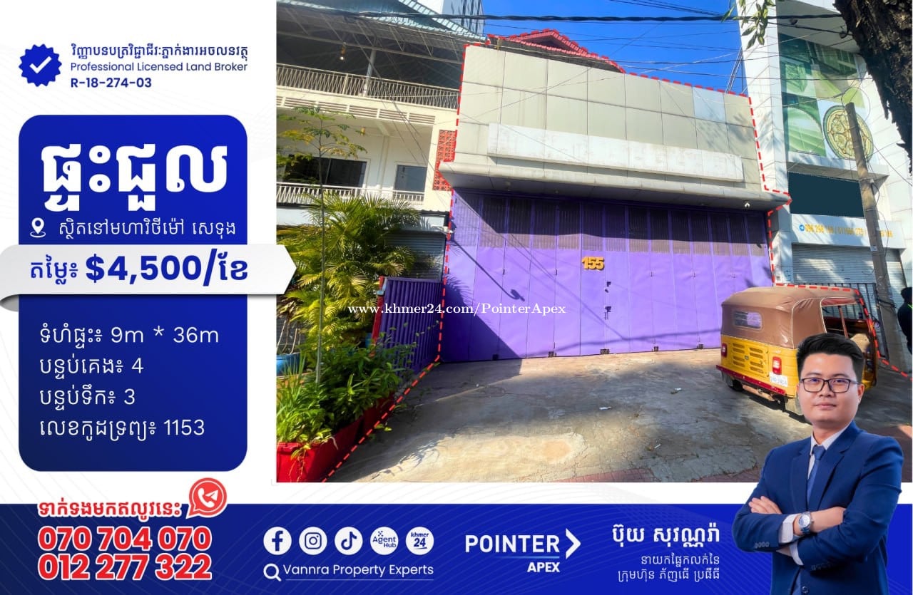 ផ្ទះជួលនៅលើមហាវិថី ម៉ៅ សេទុង សម្រាប់ជួល: $4,500 ទំហំផ្ទះ: 9m x 36m បន្ទប់គេង: 4 បន្ទប់ទឹក: 3 🔐លេខកូដអចលនវត្ថុ៖ 1153 ស្ថិតនៅលើមហាវិថី ម៉ៅ សេទុង សង្កាត់បឹងកេងកង2 ខណ្ឌបឹងកេងកង ភ្នំពេញ ——————————— ទាក់ទងមកឥលូវនេះ៖ Call: 070704xxxClick To Call / 012277xxxClick To Call Telegram: https://t.me/vannraaa 微信号: vannra-experts - Channel: https://t.me/vannrapropertyexperts - Tiktok: https://www.tiktok.com/@vannra_property_experts - Facebook: https://www.facebook.com/vannra.phnompenh.property/