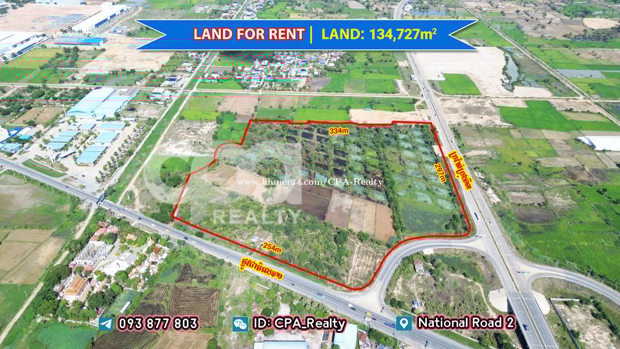 ⭕️ដីជួលផ្លូវជាតិលេខ២ 🆔 12798 💢ទំហំដីសរុប: 134,727m2 💢តម្លៃជួល: $0.9/m2 ចរចារ 📍ទីតាំង៖ https://h7.cl/1nNbT ☎️ 𝟎𝟗𝟑 𝟖𝟕𝟕 𝟖𝟎𝟑 𝙩𝙚𝙡𝙚𝙜𝙧𝙖𝙢: https://t.me/cparealtors 𝙬𝙚𝙘𝙝𝙖𝙩 𝙄𝘿: 𝘾𝙋𝘼_𝙍𝙚𝙖𝙡𝙩𝙮 𝙩𝙚𝙡𝙚𝙜𝙧𝙖𝙢 𝙘𝙝𝙖𝙣𝙣𝙚𝙡: https://t.me/cparealty