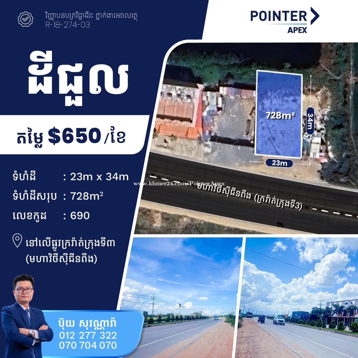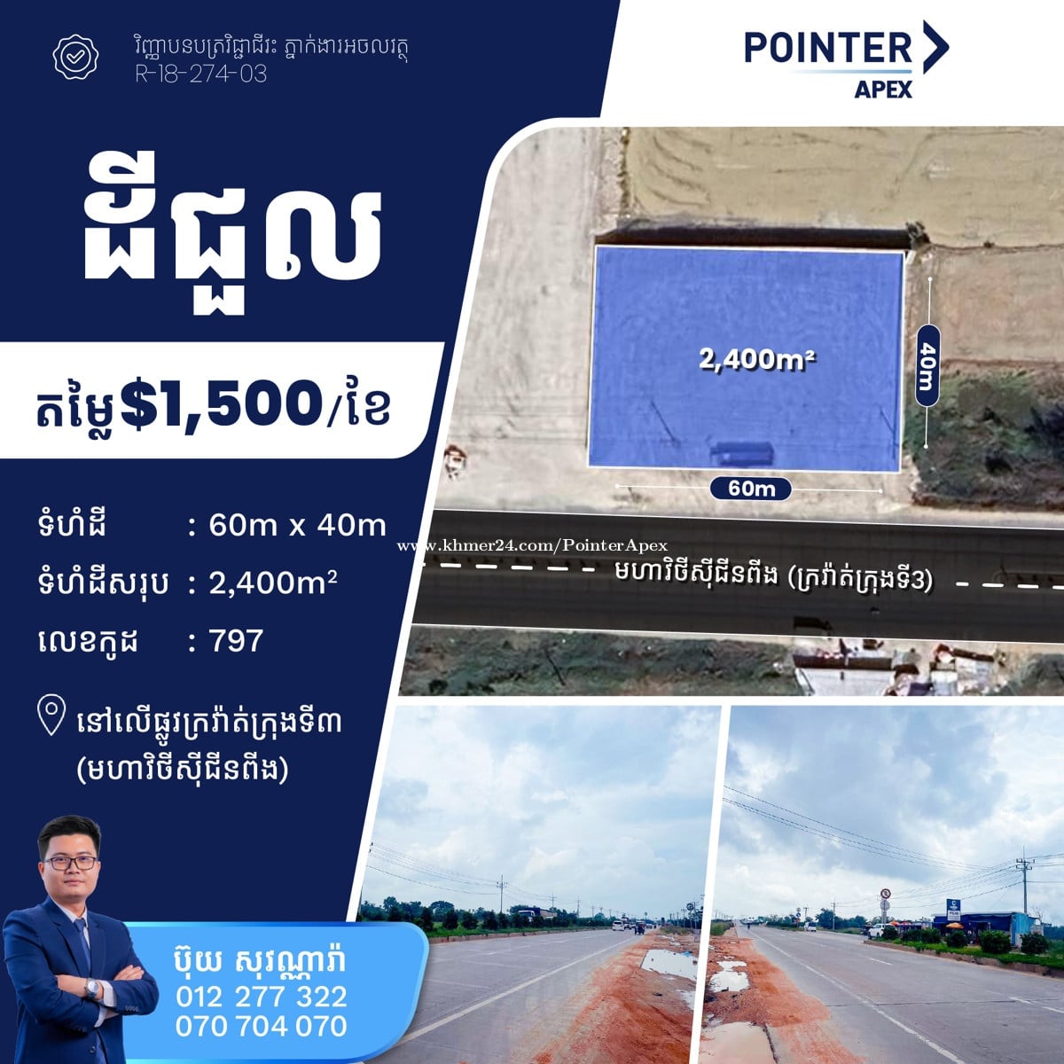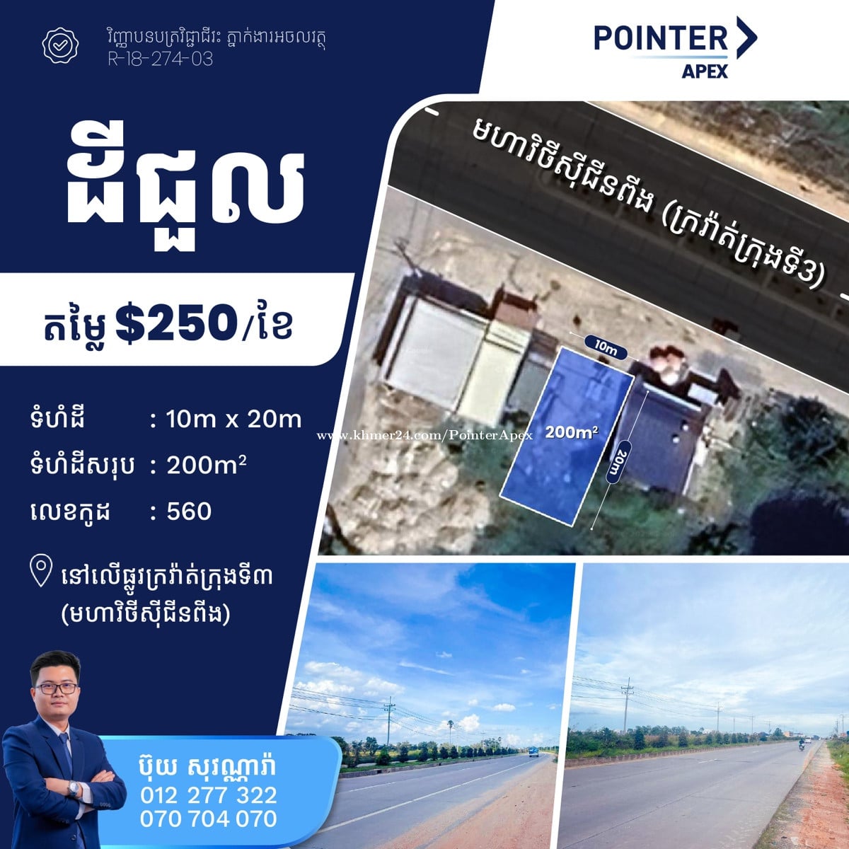 ដីអាជីវកម្មសម្រាប់ជួលល្អៗនៅលើមហាវិថី សុី ជីនពីង (ក្រវ៉ាត់ក្រុង 3)🤩 ខ្ញុំសូមណែនាំដីជួលល្អៗជាច្រើនទីតាំងដែលស្ថិតនៅលើផ្លូវមហាវិថី សុី ជីនពីង ដែលមានទំហំចាប់200m2 រហូតនៅដល់4,000m2 ជាង អាចឱ្យបងប្អូនបើកជាការ៉ាស់សាំង ភោជណីយដ្ឋាន ការ៉ាស់ឡាន និងអាជីវកម្មផ្សេងៗទៅតាមតម្រូវការ🤩 ប្រញ៉ាប់ឡើង! ទាក់ទងមកឥលូវនេះដើម្បីណាត់ជួបមើលទីតាំងផ្ទាល់✨ ________ Call: 070704xxxClick To Call / 012277xxxClick To Call Telegram: https://t.me/vannraaa 微信号: vannra-experts Channel: https://t.me/vannrapropertyexperts