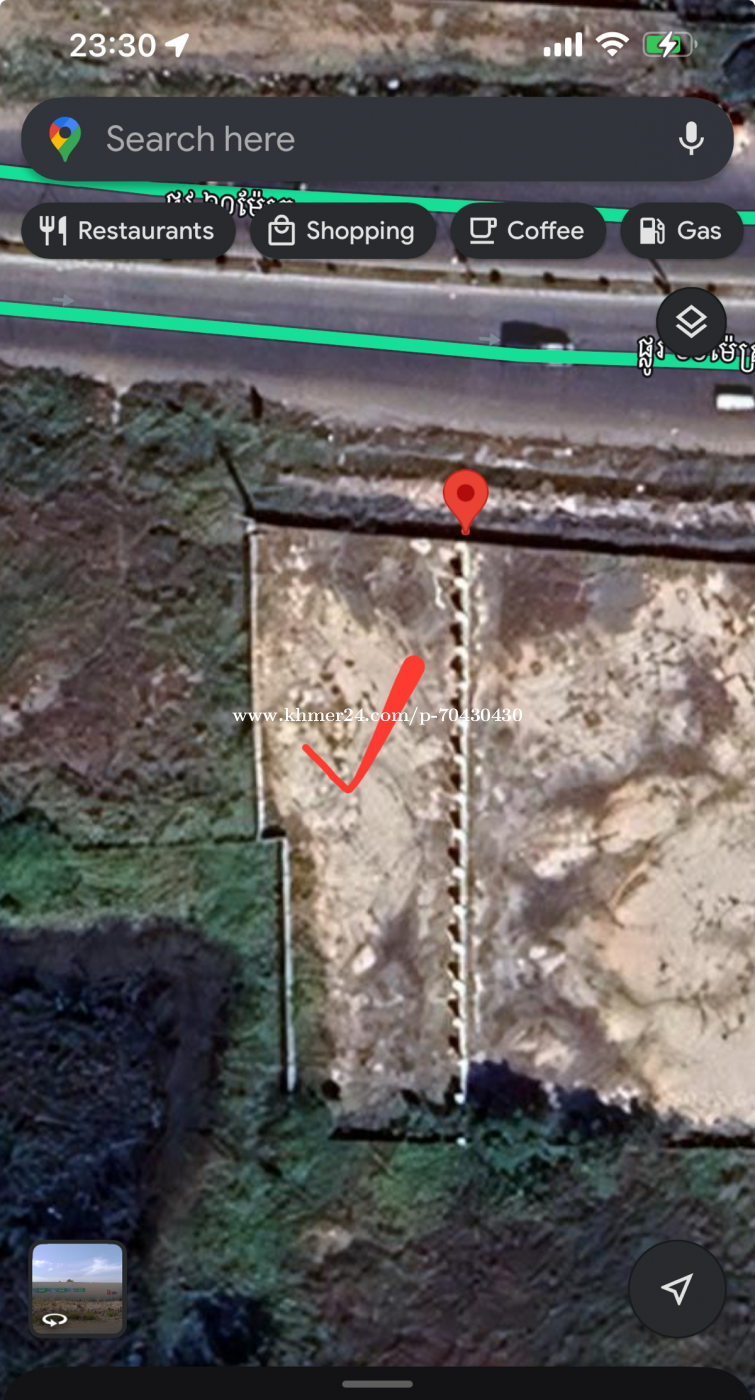 ដីជួល ជាប់ផ្លូវក្រវ៉ាត់ក្រុងទី2 មុនភ្លើងស្តុបផ្លូវ60ម៉ែត្រ - ទំហំ 1005m2 (ប្លង់រឹង) - ក្បាល 20ម៉ែត្រ គុណ 50ម៉ែត្រ - តំលៃ 3500$ ក្នុងមួយខែ - ប្រាក់កក់ តាមការចរចារ - រយៈពេលជួលតាមការចរចារ - មានទឹកមានភ្លើងរួចជាស្រាច់ - ដីខ្ពស់មិនលិចទឹក - របងថ្មព័ទ្ធជុំវិញ ទីតាំង ខណ្ឌដង្កោរ https://maps.app.goo.gl/AHns6UrqGWQ2NtweA?g_st=ipc Land for rent, next to the 2nd Ring Road, 60 meters before the traffic light - Size 1005m2 (hard title) - Head 20 meters by 50 meters - Price 3500$ per month - Deposit negotiable - Lease term negotiable - Water and electricity available - High land, not flooded - Stone fence around Location Dangkor District 土地出租,位于二环路旁,红绿灯前60米处 - 面积:1005平方米(产权清晰) - 地块尺寸:20米 x 50米 - 月租金:3500美元 - 押金可议 - 租期可议 - 水电齐全 - 地势较高,不受洪水侵袭 - 四周有石墙 地点:丹哥县