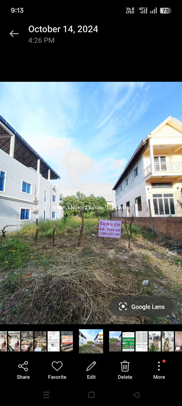 -ចុះពីផ្លូវជាតិលឹខ១ តាមផ្លូវបេតុង ទល់មុខវត្ត វាលស្បូវ ប្រហែល 200m ដល់ដីជួល ខាងឆ្វេងដៃ. -ដីជួល ទំហំ: 1750 m2 10.50m × 27m រីកក្រោយ 29.50m × 50m - ដីមានតបណ្ដាញទឹក នឹង ភ្លើងរដ្ធ ស្រាប់. - សន្ធានដីខ្ពស់ស្រាប់ ( ខ្ពស់ជាងផ្លូវ ). -តំលៃជួល: 2000 $ / 1 ខែ -តំលៃលក់: 1 m2 / 1000 $