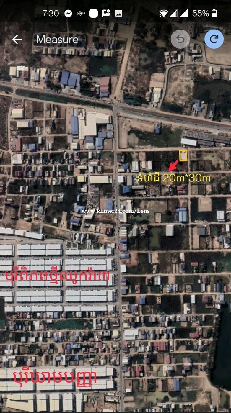 ទីតាំងល្អក្រោយផ្លូវ 60មែ៉ត្រ តាំងក្រសាំង និងជិតផ្លូវឈូកវ៉ាបី ផ្លូវ30ម៉ែត្រ + ទីតាំង: ភូមិកាកាប សង្កាត់កាកាប ខណ្ឌពោធិ៍សែនជ័យ រាជធានីភ្នំពេញ - ទំហំដី:20 m x 30m - ផ្លូវបេតុង: 12m កែងនិងផ្លូវ 12m - ប្លង់រឹង - តំបន់សំបូរទៅដោយបុរី និងមានគម្រោងអភិវឌ្ឍន៍ច្រើន - នៅជាប់បុរី ឃាង បញ្ញាផ្លូវ60m និងជិតបុរីពិភពថ្មី ឈូកវ៉ា២ & ៣ - តំបន់ មិនមានទឹកជំនន់ មានផ្លូវបេតុង12ម៉ែត្រស្រាប់ *ទំនាក់ទំនងលេខម្ចាស់ម្ទាល់ 016 898 200 *បញ្ជាក់ម្ចាស់លក់ផ្ទាល់*