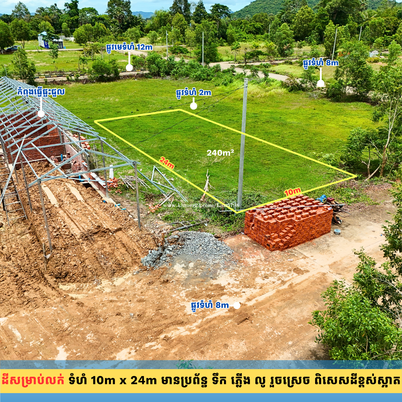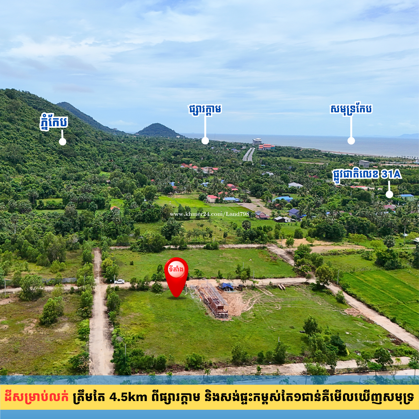 ដីតម្លៃល្អមានផ្លូវមុខក្រោយ ត្រឹមតែ 500ម ពីសមុទ្រក្រុងកែប 📺វីដេអូនិយាយក្នុង YouTube https://youtu.be/MzCjWaCusbE * តម្លៃលក់ | Price: $25,000 ចរចា . ទំហំ | Size : 10m x 24m = 240m²(ទំហំក្នុងប្លង់) . ជាប់ផ្លូវខាងមុខទំហំ 8m ផ្លូវខាងក្រោយ 2m ចេញចូលមិនទាល់ . មានប្រព័ន្ធទឹក ភ្លើង និងលូ រួចស្រេច។ * កម្មសិទ្ធិប្លង់ រឹង (ចរចារត្រូវកាត់ប្លង់ជូន) ស្ថិតនៅតំបន់ដែលមាន: ផ្ទះប្រជាជននៅជុំវិញ ផ្ទះលំហែ រីសដ -ល-។ 📍ទីតាំងដី៖ ភូមិថ្មី សង្កាត់ព្រៃធំ ក្រុងកែប ខេត្តកែប។ + យើងខ្ញុំមានសេវាធនាគារល្អៗជូន បើសិនជាអតិថិជនត្រូវការ។ 💁សំរាប់ព័ត៌មានលំអិតផ្សេងៗ៖ 📲092765xxxClick To Call /Cellcard 📲0967000xxxClick To Call /Smart 📲098765xxxClick To Call /Smart -Telegram ផ្ទាល់ខ្លួន https://t.me/phanna798 -Telegram Channel https://t.me/Land798 -Facebook page https://web.facebook.com/Land798
